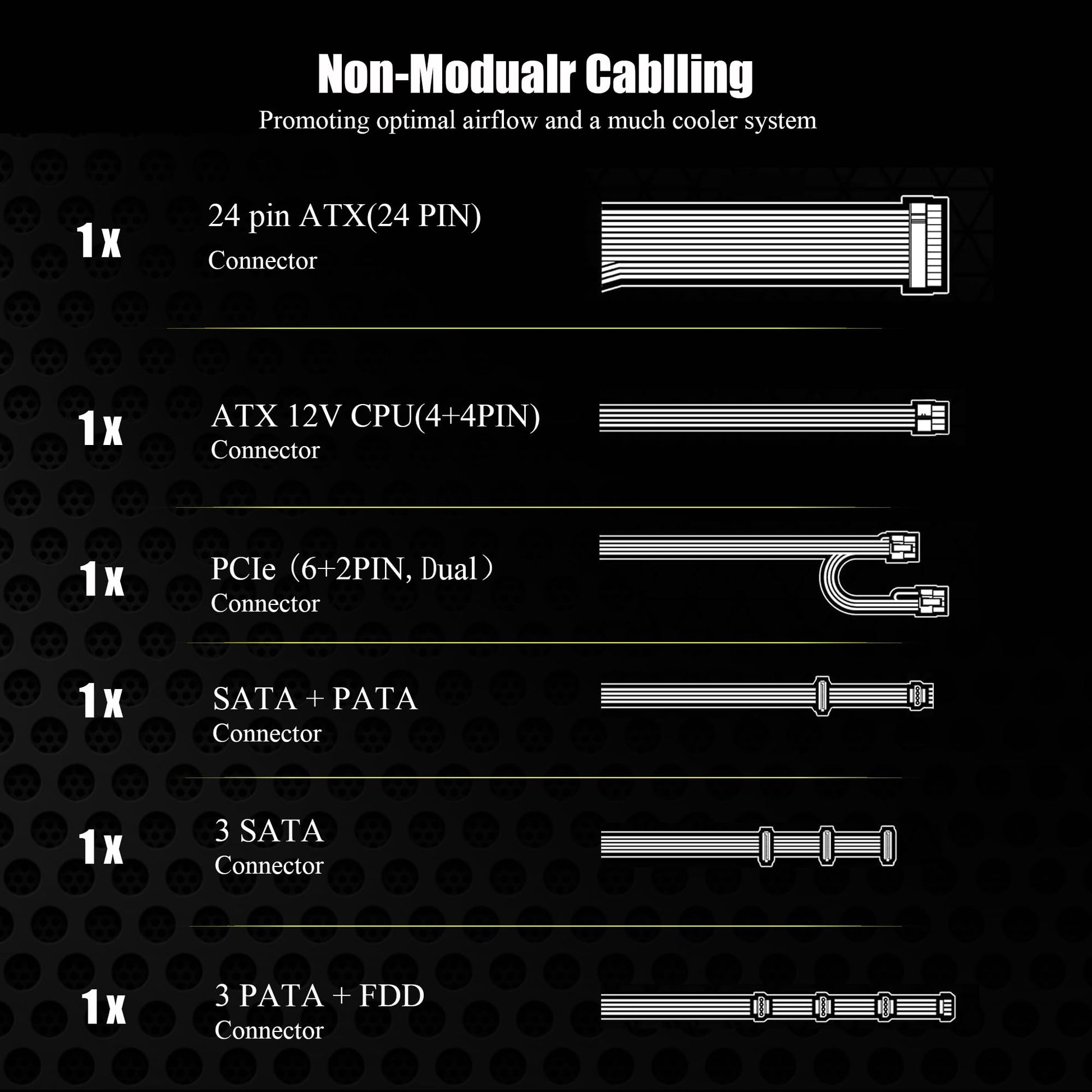 - Non-Modular Design:KYLINTEC KY-700W power supply eliminates clutter and ensures neat cable management, promoting optimal airflow and a much cooler system.