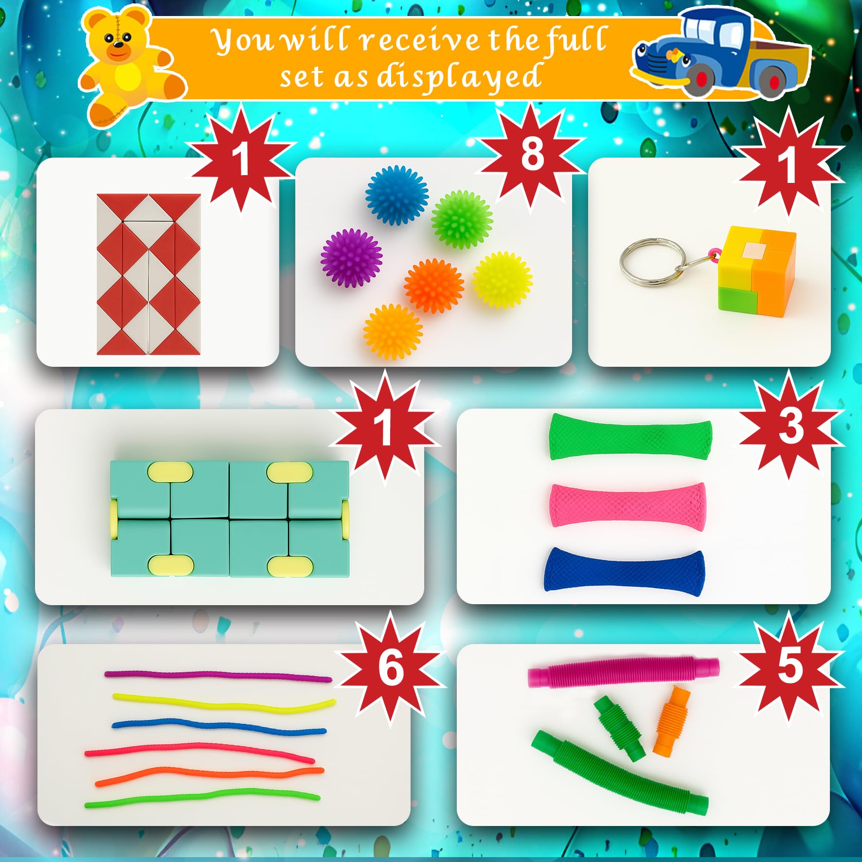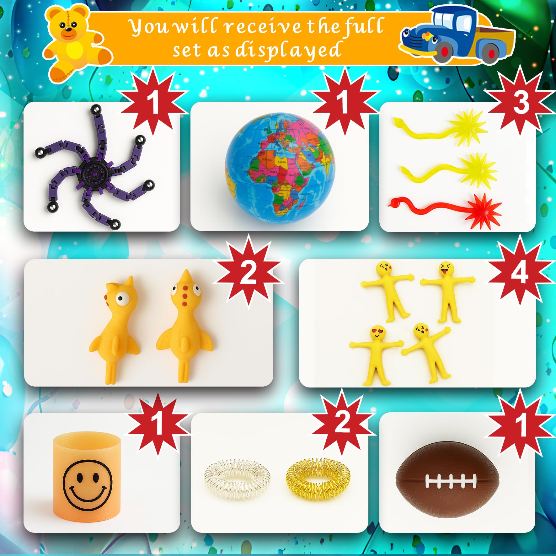 - 🎁 Versatile Gift for All Occasions Whether it’s a birthday, holiday, classroom reward, party favor, or even a piñata filler, this fidget toy set is perfect for every occasion. Its elegant packaging and thoughtful design make it a memorable and enjoyable gift for kids and adults alike.