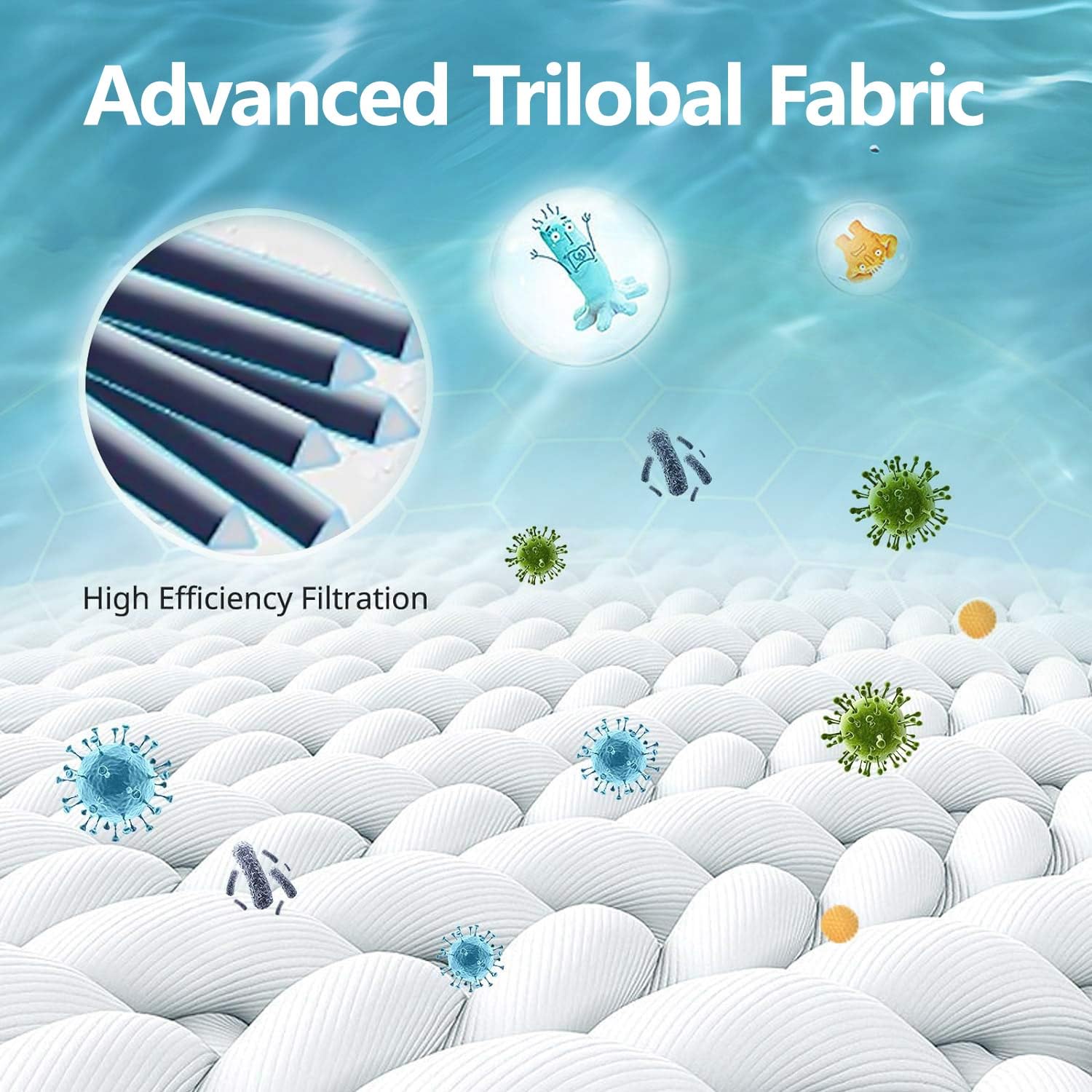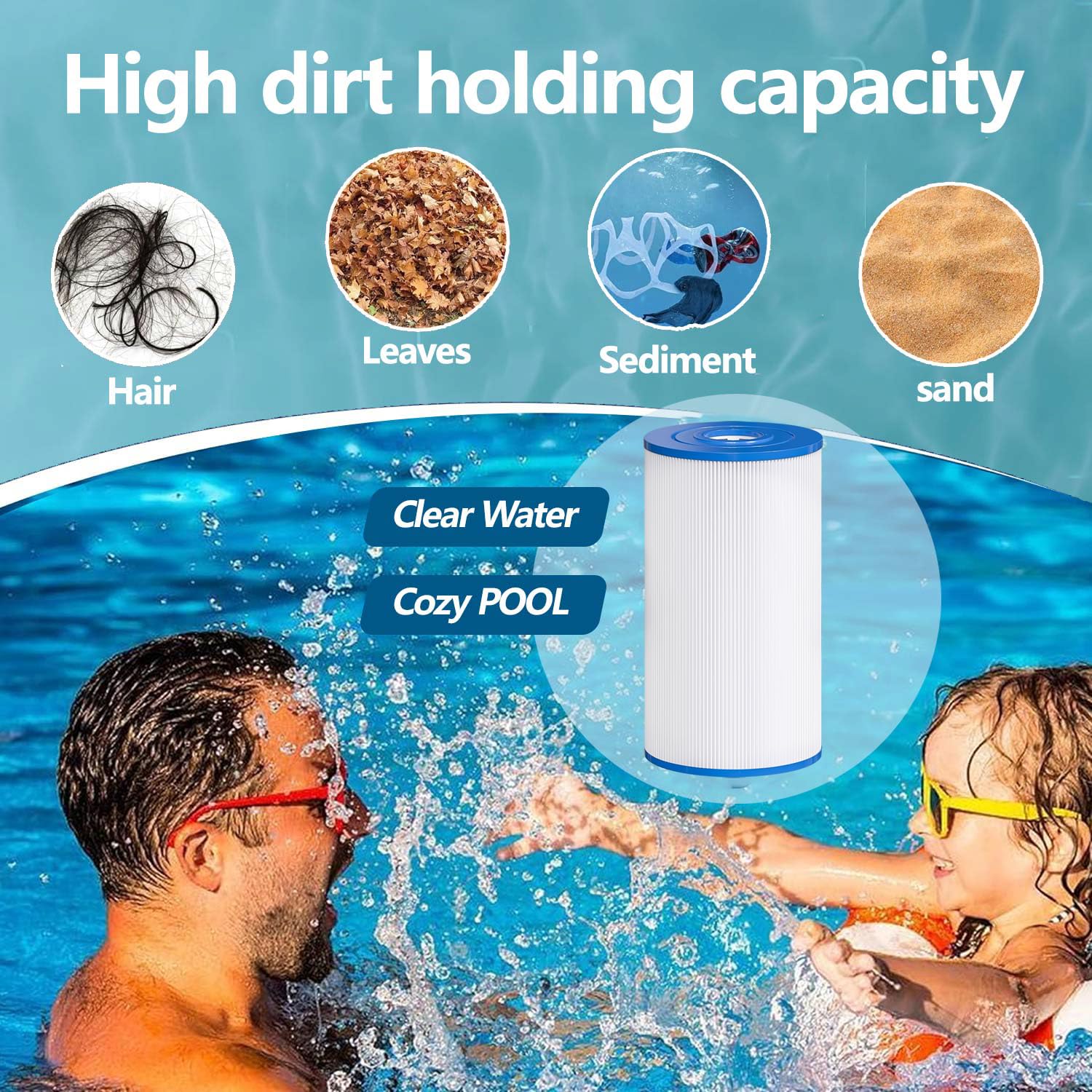 - 【Advanced Filtration System】Keep your pool water clean and clear with the help of this high quality pool filter cartridge. Better than other normal fabric, our innovative Trilobal fiber provide maximum dirt holding capacity, high efficiency filtration system,and excellent chlorine Resistance. Effectively eliminates pollen, hair, dirt, leaves, dust, sand, debris and more. Embrace the Tranquility of Perfectly Filtered Pool Water.