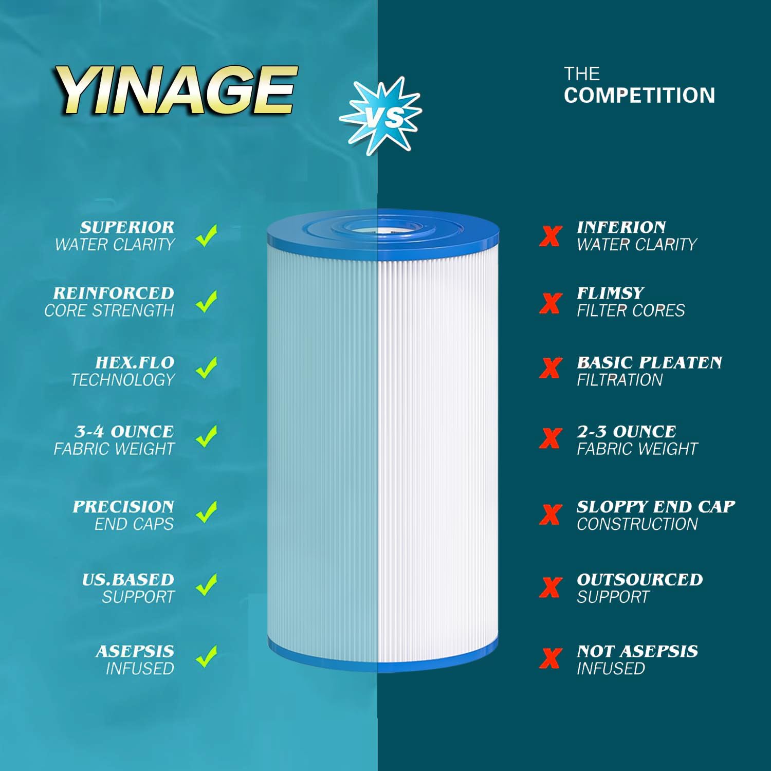 - 【Easy to Clean】Benefited from innovative and high-performance Trilobal fabric Design, Yinage filter cartridges are easier to capture and release dirt, so you can always keep your pool and spa clear and safe for you and your family. It is recommended that you can scrub every 2 weeks the fabric with a cartridge cleaner tool and rinse it with a garden hose.