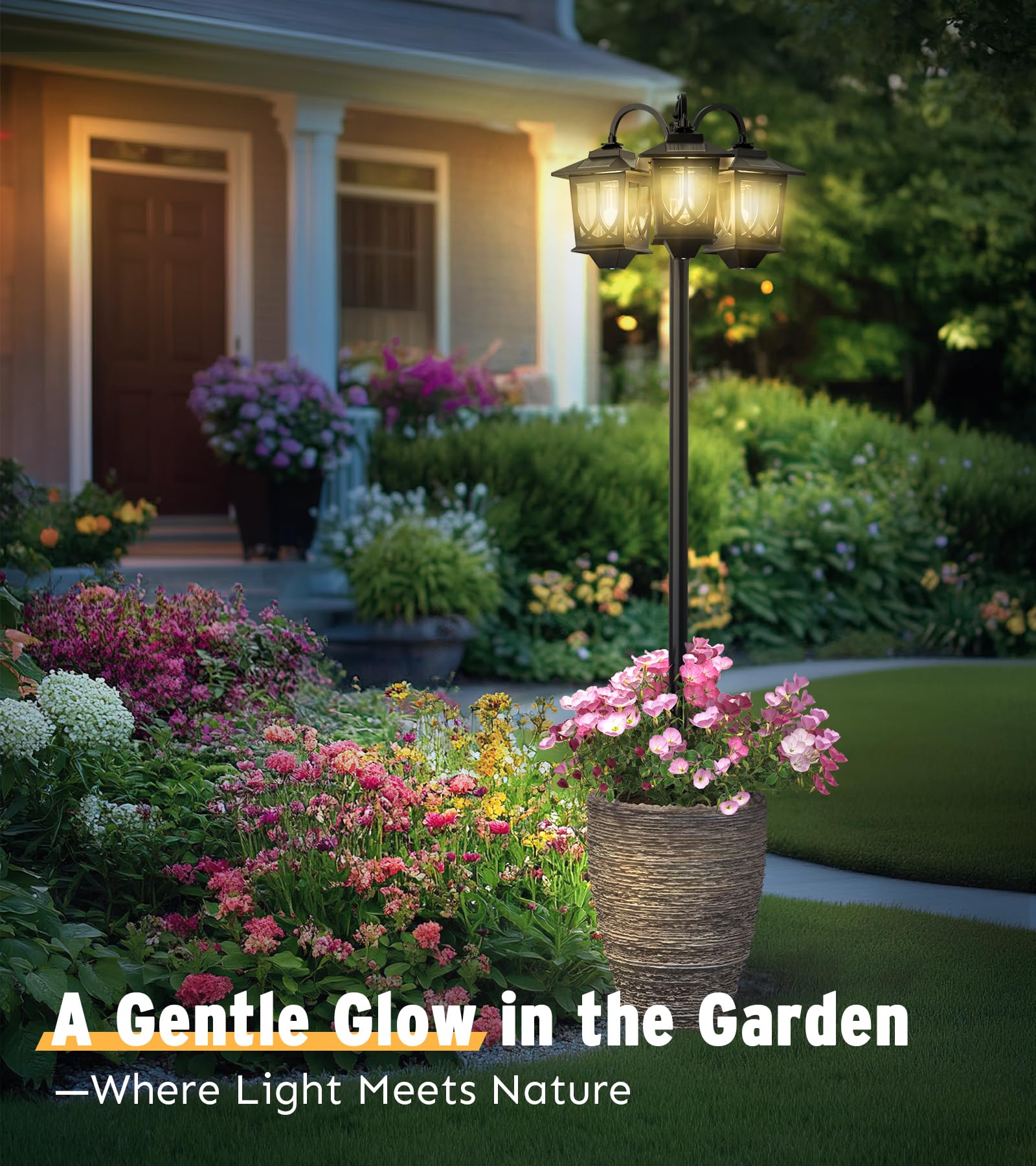 - 【From Lamp to Art: DIY Your Way】This solar light post isn’t just a light—it’s a canvas for your imagination! Add a personal touch by hanging a charming "Welcome to My Garden" sign, attaching elegant metal ornaments. Use it as a plant trellis to support climbing flowers, allowing vines to gently wrap around the lamp for a charming, natural touch. Or, adorn it with a floral wreath for a festive, seasonal look.