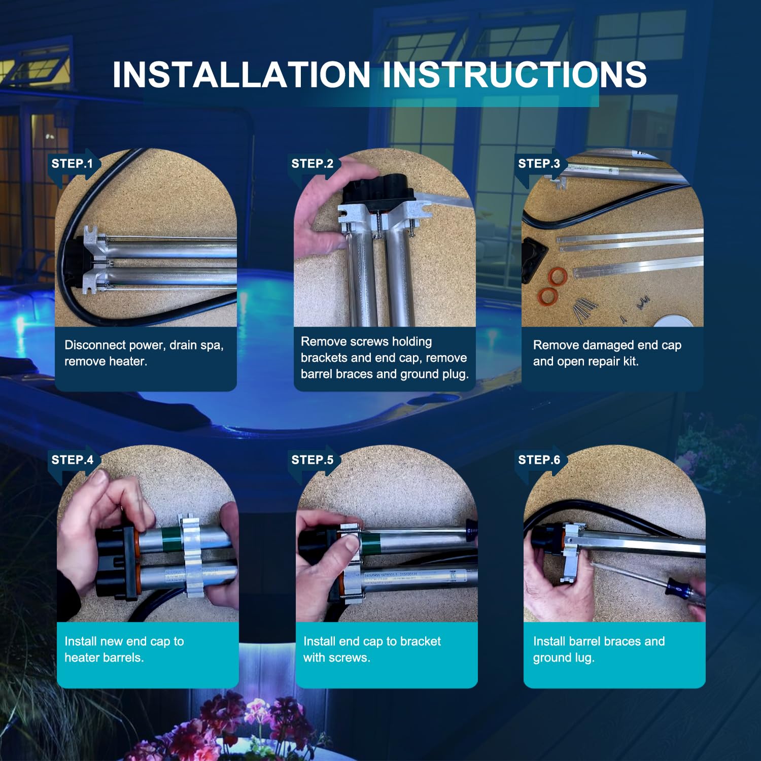 - 【User-Friendly Design】It's designed to be easy to install. The replacement process doesn't require extensive technical knowledge or specialized tools. This makes it accessible for hot tub owners or technicians to quickly and efficiently replace the damaged or worn-out end cap, minimizing the downtime of the hot tub's heating system.