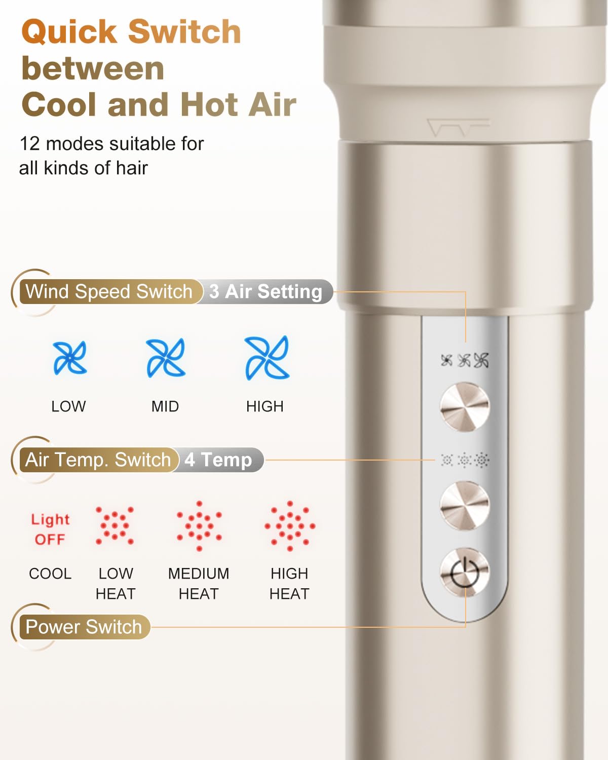 - NO HEAT DAMAGE: Gives you fast drying while maintaining low heat, rather than getting hotter as it runs, This hair styler and dryer with intelligent thermal control can automatically detect the air temperature, thus controlling it below 248°F to avoid irreversible heat damage to the hair.