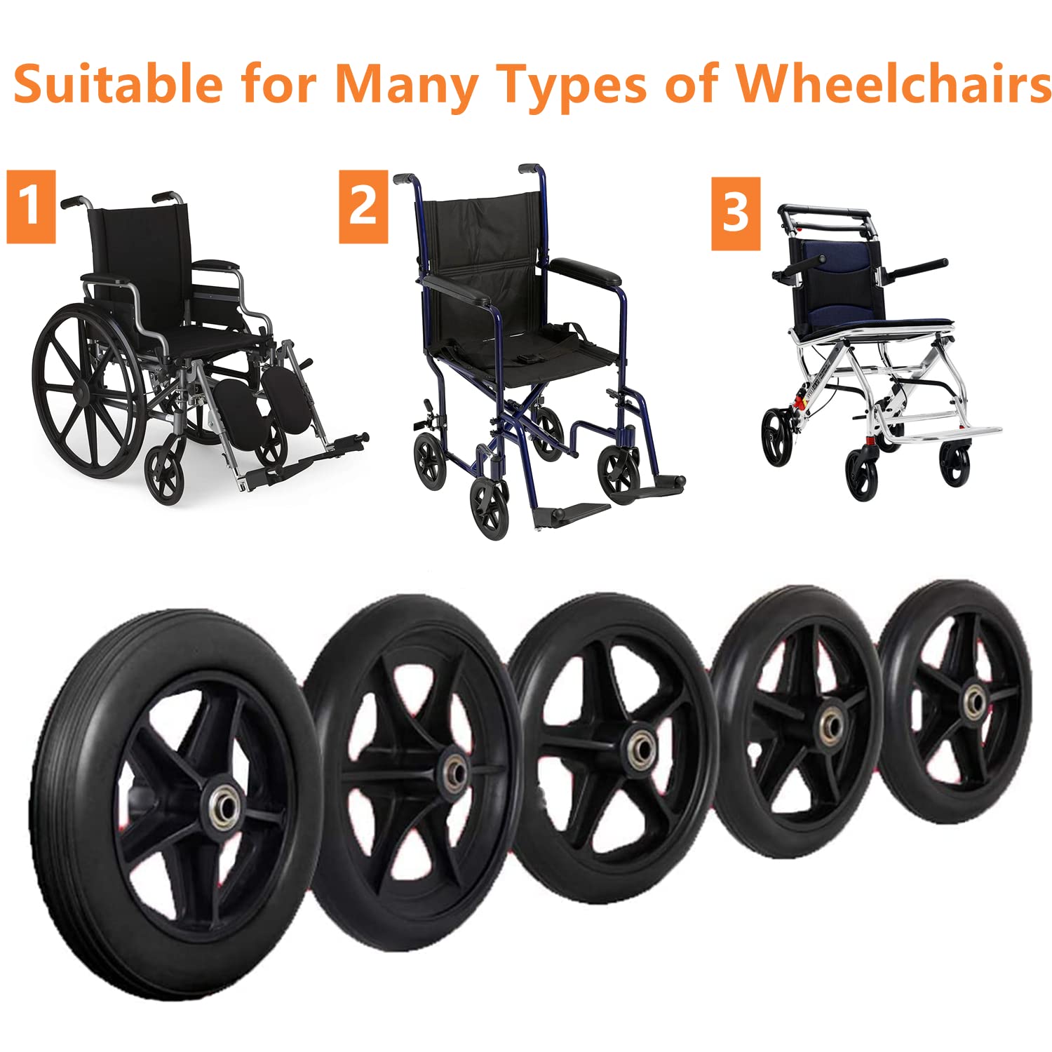 Details: Size:8 Inch (Pack of 2) 8 Inch Durable solid wheelchair caster wheel replacement compatible with most manual wheelchairs on the market. MADE TO LAST:Each wheel is made from a strong, durable material made to perform under constant, intense pressure and won’t crack, go flat or scuff over time. EASY TO ATTACH: With all hardware included, you can easily attach to most walkers and rollators. VERSATILE USE:Apply in wheelchairs, Rollators, Walkers and more. MATERIAL:PU environmentally friendly replacement tire,non-slip and wear resistant. Metal bead bearing,durable and long lasting. PACKAGE:Wheelchair wheel with hardware Kit If you have any questions, please contact us. We will reply within 24 hours as soon as possible.