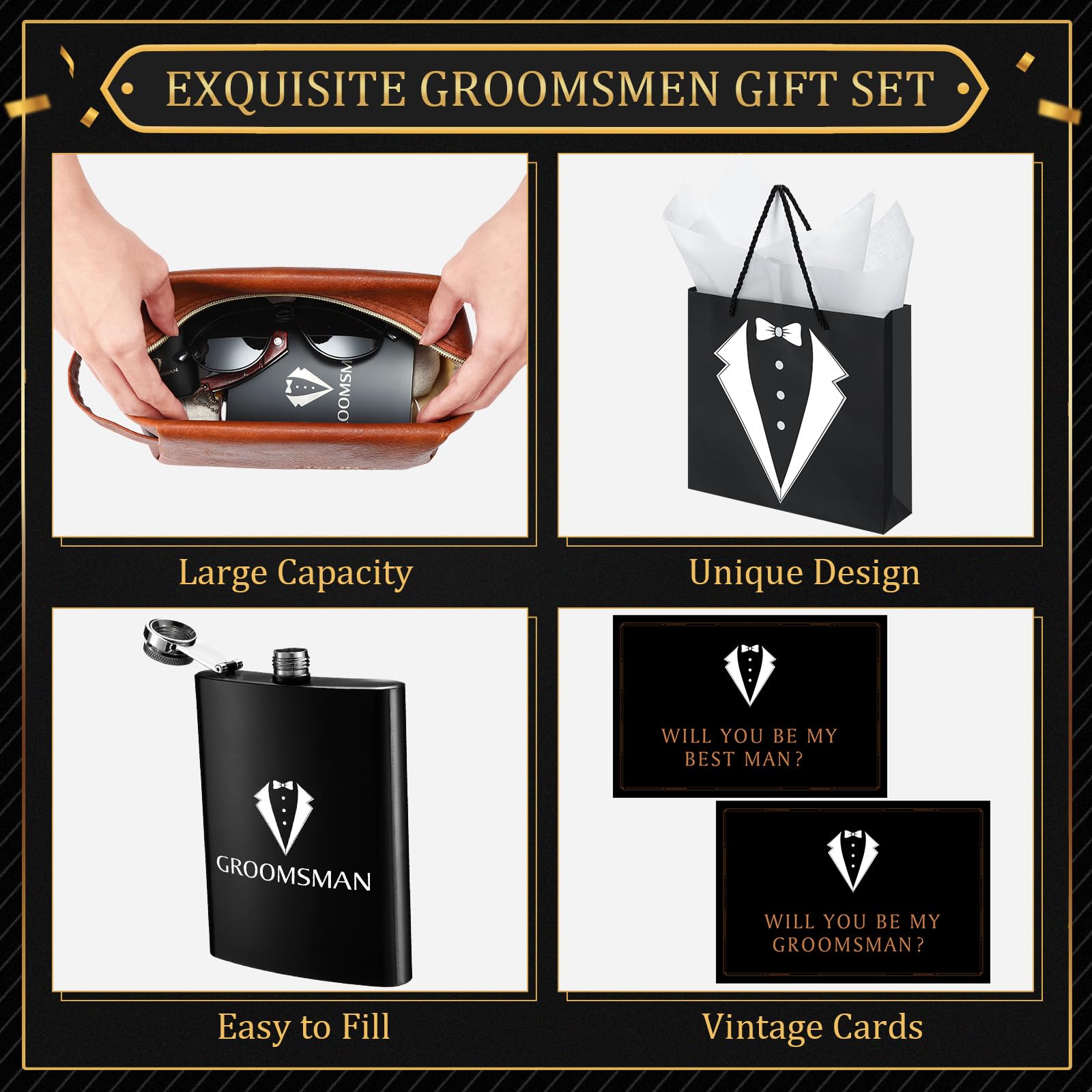 - Versatile for Any Occasion: Ideal for weddings, bachelor parties, or any special celebration, this gift set features components that cater to a wide range of personalities and lifestyles. Whether your groomsmen are adventurers, social butterflies, or casual hangout buddies, this gift set makes each one feel valued and appreciated, making it a memorable token of your friendship.
