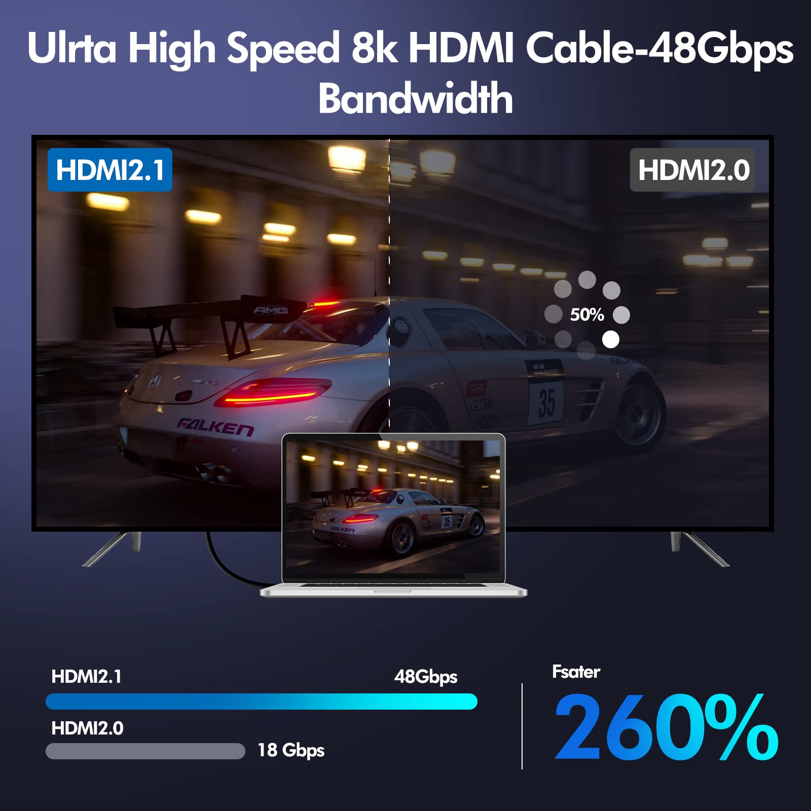 - [Cutting-Edge Version] 50ft HDMI 2.1 cable offer seamless backward compatibility with device ports of HDMI 2.0b, 2.0, 1.4, and earlier iterations. Opting for HDMI 2.1 cables translates to significant savings on future cable upgrade expenditures.