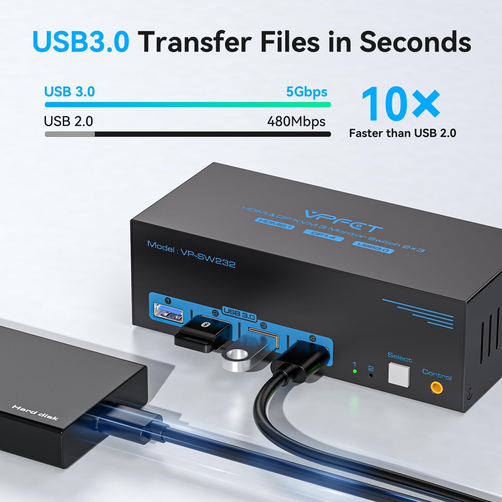 - 【USB 3.0 KVM Switch】3 Monitor KVM for 2 Computers equipped with 4 USB 3.0 ports, each delivering super-fast speeds of up to 5Gbps, our KVM ensures exceptional data transmission performance surpassing that of USB 2.0. Notably, our KVM is compatible with previous USB versions like 2.0 and 1.1, offering a convenient and efficient solution for all your connectivity needs.