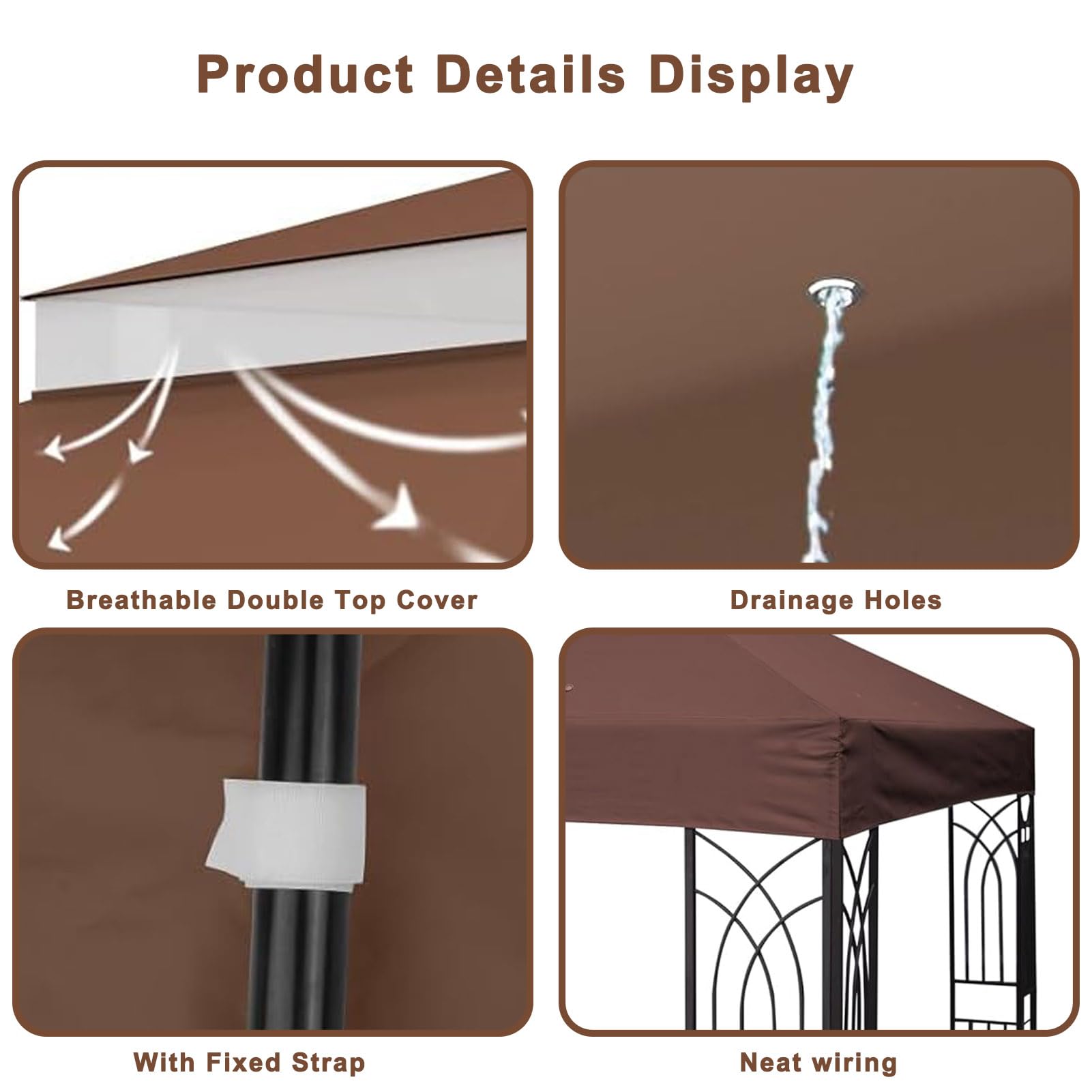 8'x8' Gazebo Canopy Replacement Top, 2 Tier Outdoor Waterproof Gazebo Canopy Cover with Drainage Hole, for Outdoor Patio Backyard Garden Lawn Sun-Shelter (Brown)