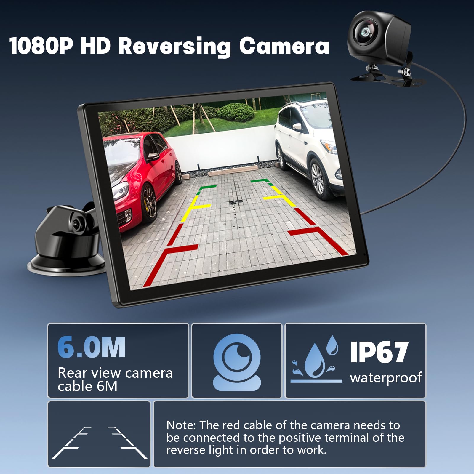 - 【Waterproof Backup Camera】This car play screen is equipped with a 170° wide-angle backup camera, providing an ultra-wide field of view to clearly see the rear surroundings. Whether in narrow parking spaces or complex road conditions, it handles them with ease, making parking more confident and safe.