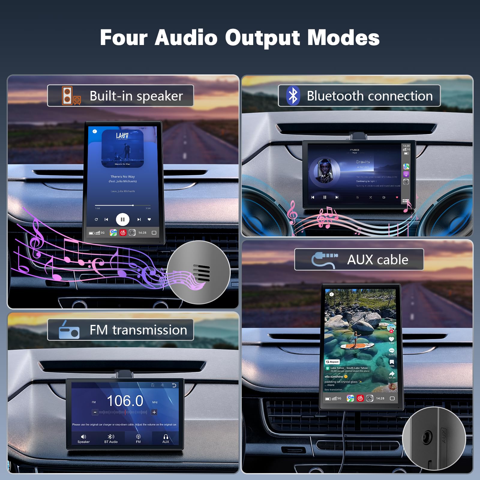 - 【Portrait/Landscape Screen Switching】Our carplay screen supports seamless switching between portrait and landscape modes, catering to diverse viewing needs across various driving scenarios. Whether you're enjoying videos in landscape mode or using navigation in portrait mode, the transition is effortless, adding more fun and convenience to your driving experience.