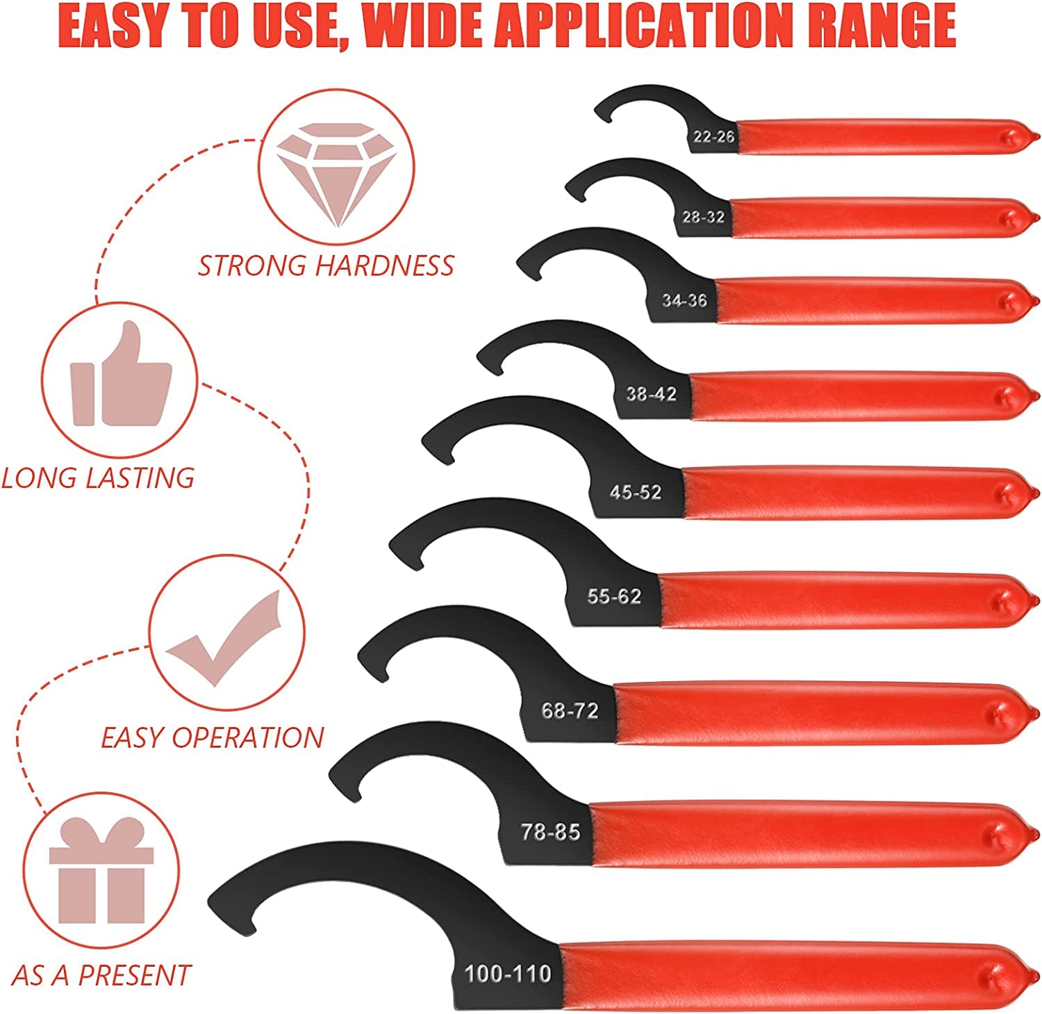 - Practical present -- The coilover wrench kit are designed with the front hook that is provided to engage with side holes or slots, so they don't slip or wear out, and they can be practical presents for your family or friends who need them. Vivid and beautiful color let you find them easily when you need them.