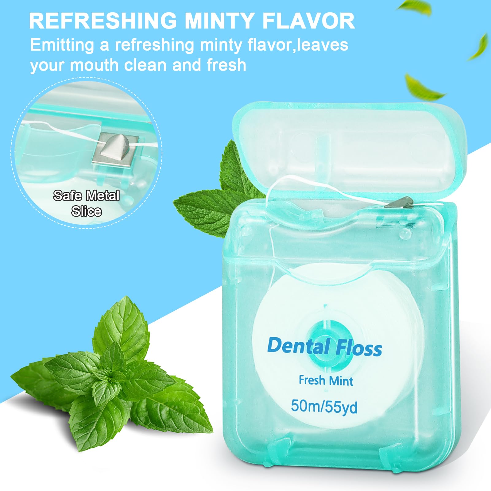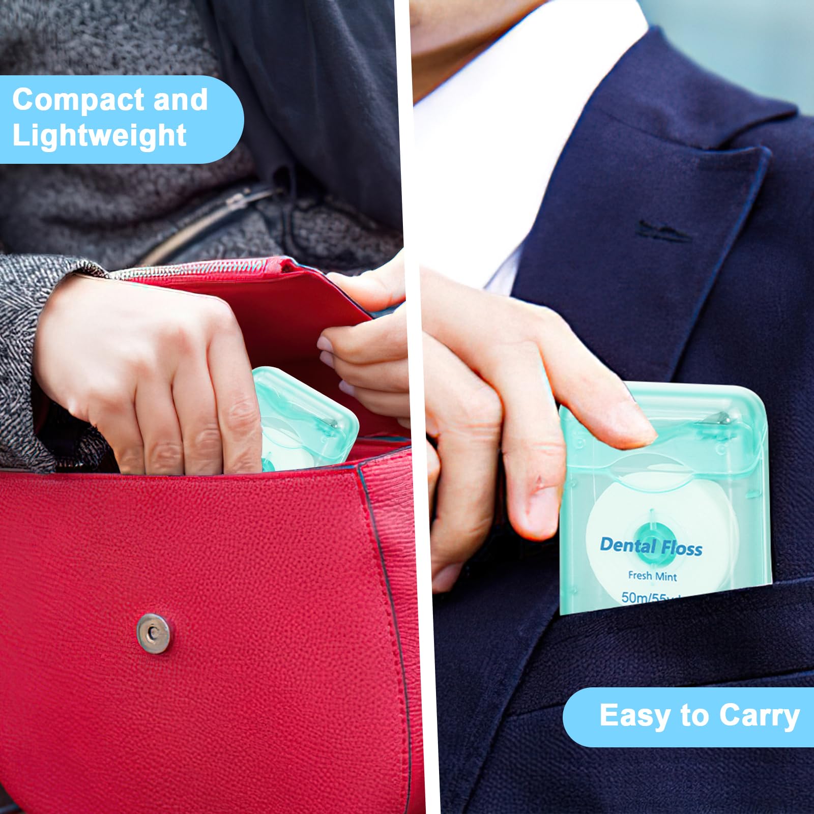 Details: This value pack includes 96 boxes of dental floss, each roll containing 50 meters (55 yards) of mint flavored floss. With individual packaging, these portable dental floss containers are perfect for keeping in your pocket, handbag, travel kit, or office drawer, ensuring you always have a clean smile on the go.