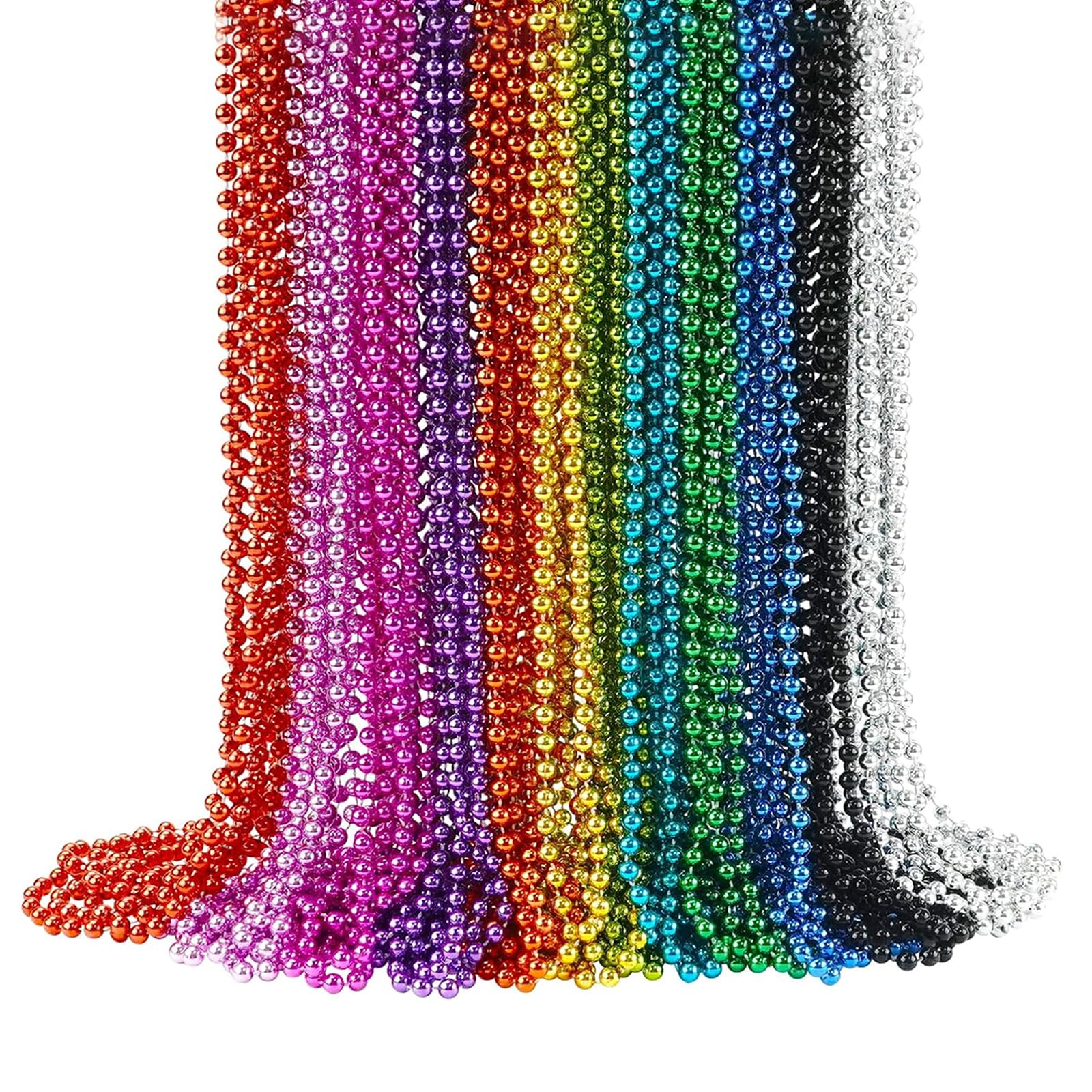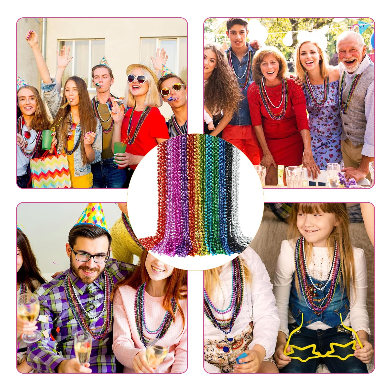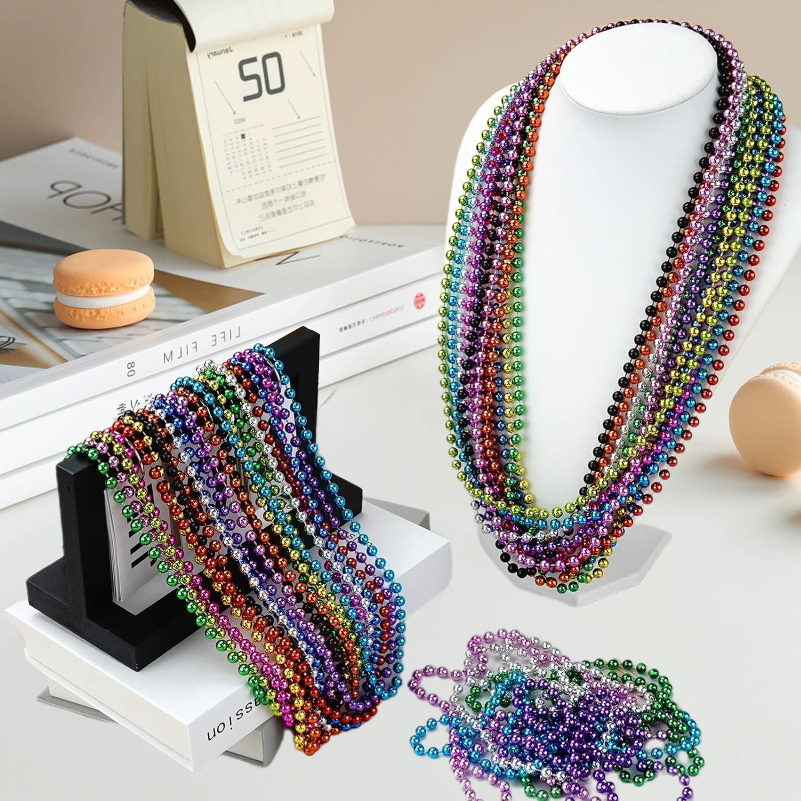96 PCS Mardi Gras Beads, Metallic 12 Kinds of Bead Necklace Party Favors, 33" Mardi Gras Necklace Women Men Stuff, Festival Parade Throw Accessories for Wedding Birthday Celebrations Decorations