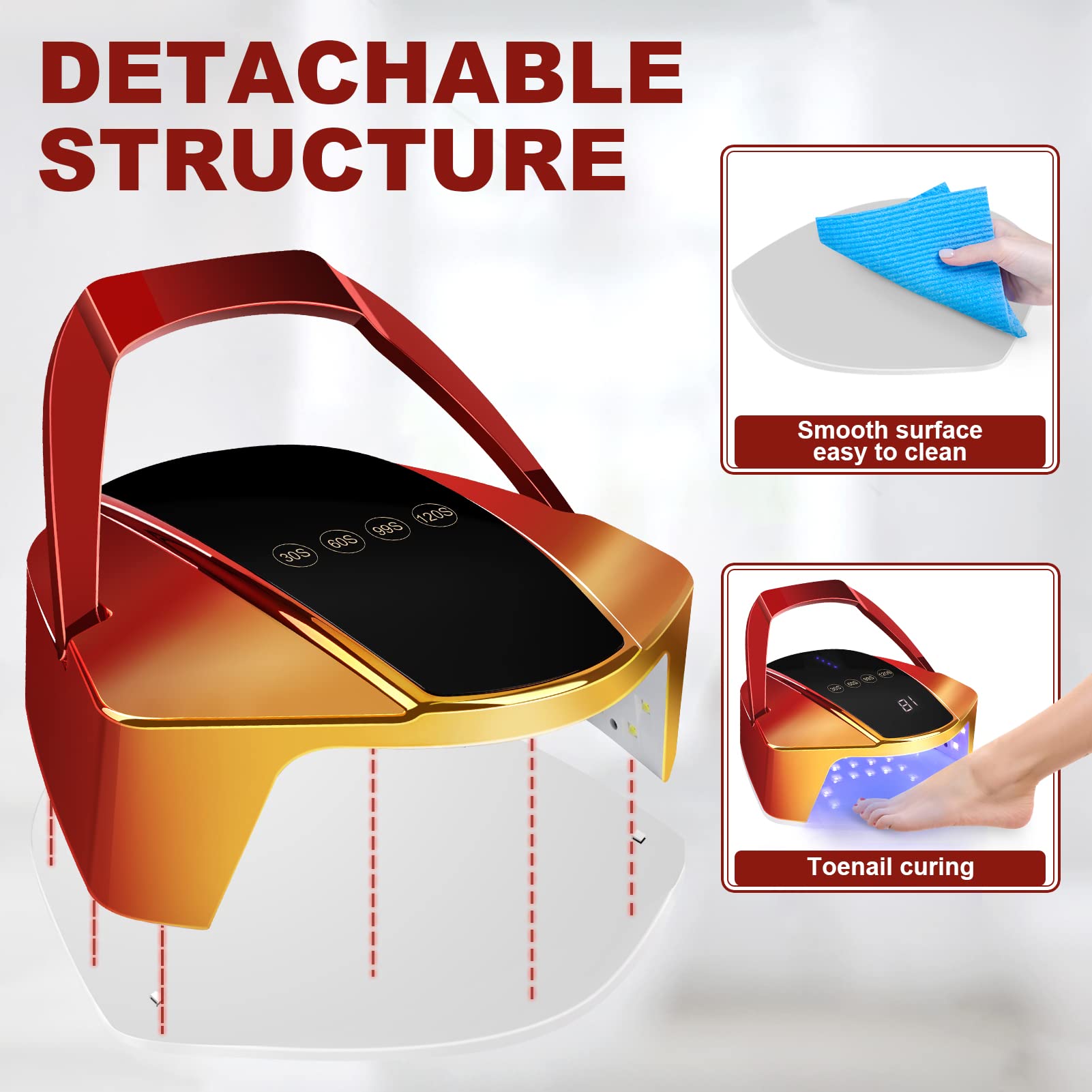 Details: 96w Rechargeable UV Light for Nails | Cordless LED Nail Lamp with Portable Handle | Professional Curing UV Lamp for Gel Nails | Auto Infrared Sensor and 4 Timers Nail Tools for Nail Polish(red)