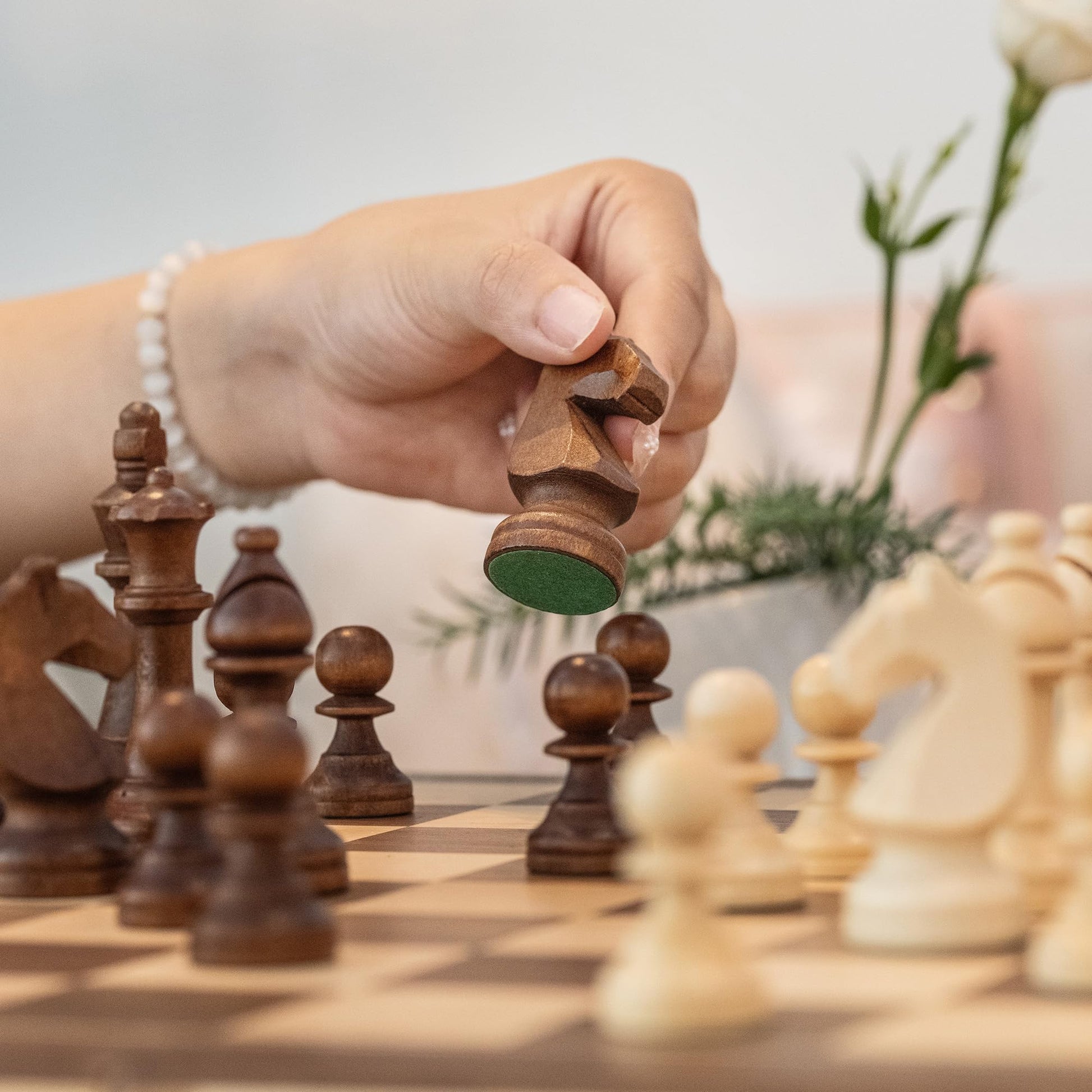 - [Amazing Details] A&A board game presents you with incredibly good details: the 0.55 inch thick frame with mortise and tenon joints makes the box sturdy; the rounded corners are visual and tactile comfortably; the design of patented support legs gives you a flat board surface when playing chess; the magnetic weighted pieces add stability to your game on the travel.