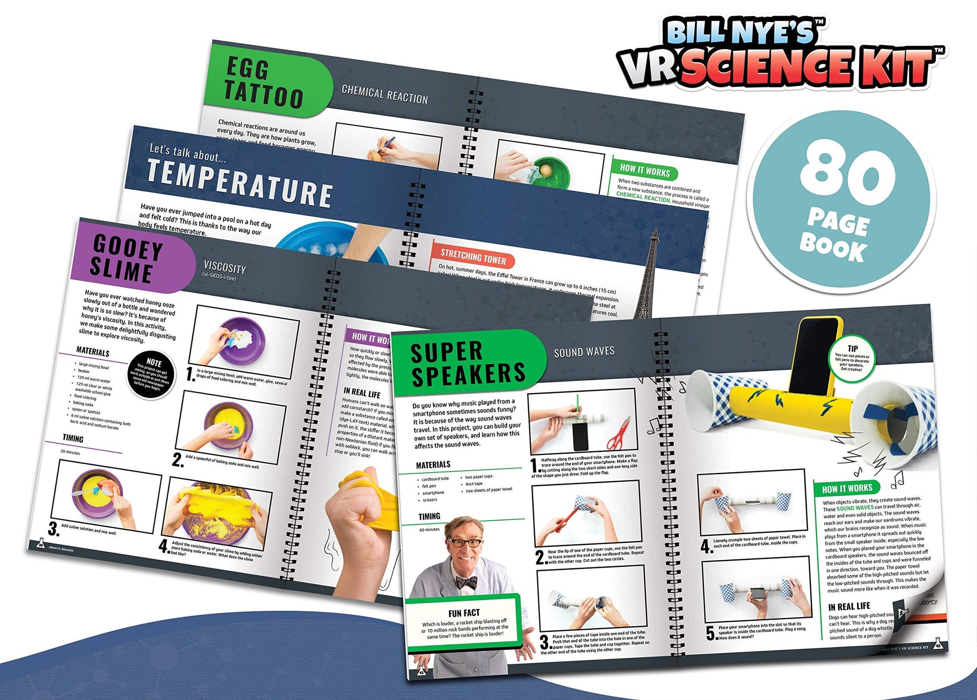- THE ULTIMATE IMMERSIVE LEARNING EXPERIENCE - Join Bill Nye is his virtual reality lab! Virtual reality brings this 80 page book to life, teaching 30 step-by-step science projects in an easy and fun to explore learning format!