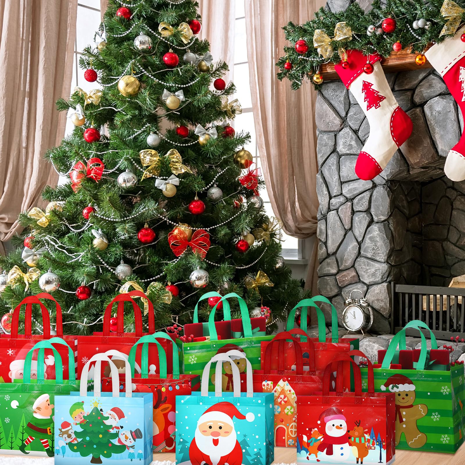 - Spacious and Versatile: these Christmas tote bags are generously sized at 12.8 x 9.8 x 6.7 inches/32.5 x 25 x 17 cm; Whether you are wrapping small presents like candies and chocolates or larger presents, our bags will fit your needs and allow you to easy and efficient gift giving