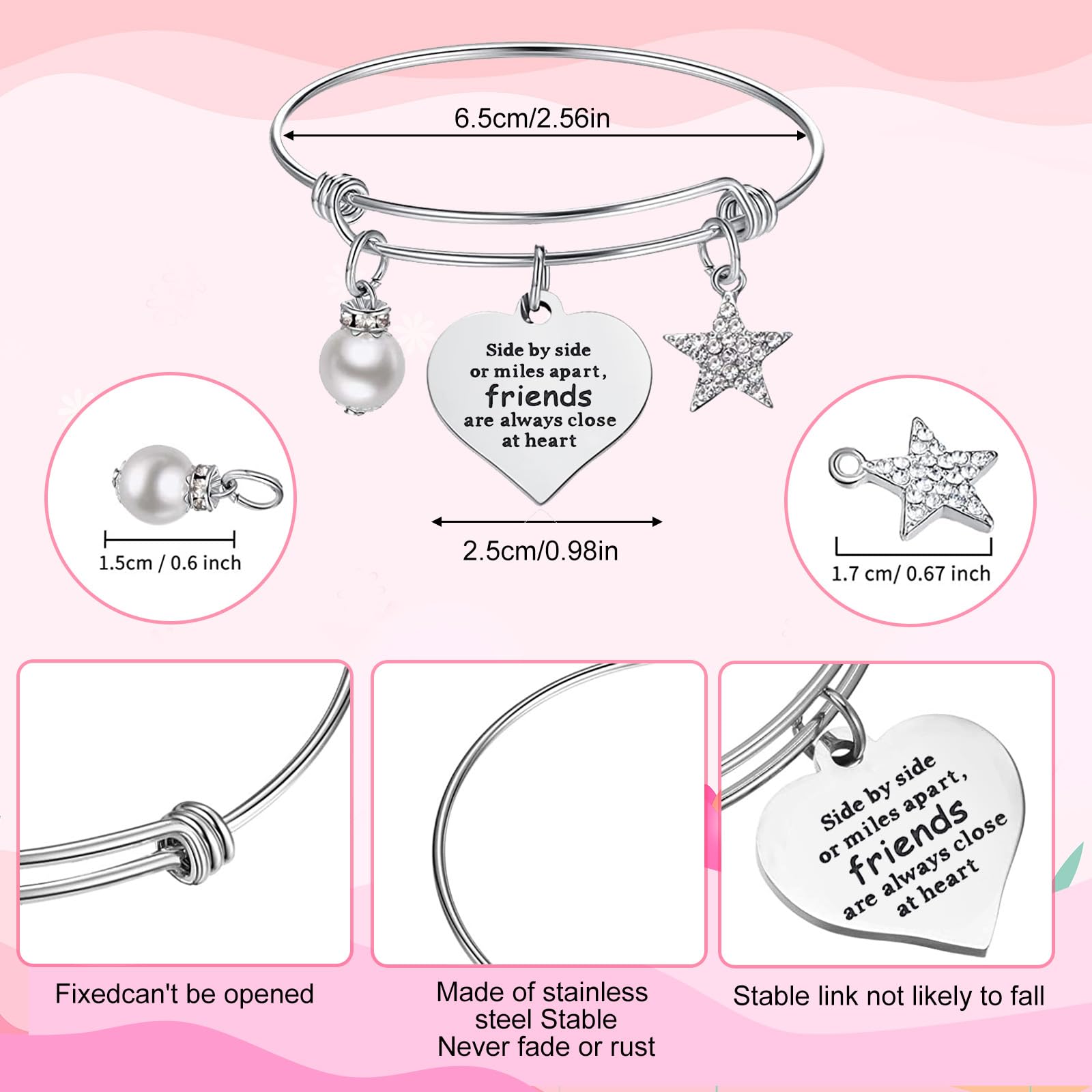 - Sweet Words: the phrase [Side by side or miles apart, friends are always close at heart]" is printed on each of cosmetic bags and bracelets for women, warm gifts for Christmas, birthday, thank you, housewarming, wedding, remembrance gift, miss you gift, stocking stuffer, graduation, Thanksgiving, Valentine's Day, etc