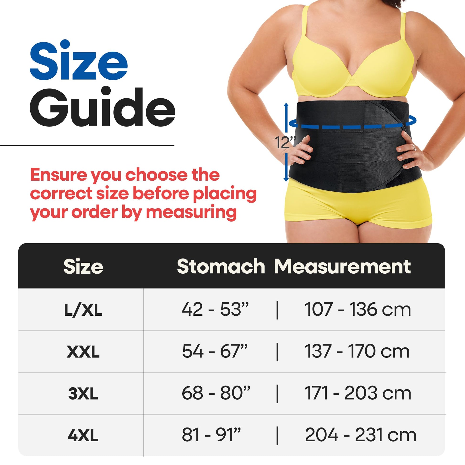 - 12 INCHES WIDE FOR EXTRA SUPPORT: Effective abdominal binder belt for a larger plus size person. Supports your stomach with compression & stabilization to help speed your post op recovery or hold in excess abdomen fat. Wearable under clothing discreetly worn under or over your clothing – MEASURE AROUND WIDEST STOMACH AREA (Not Waist Size)