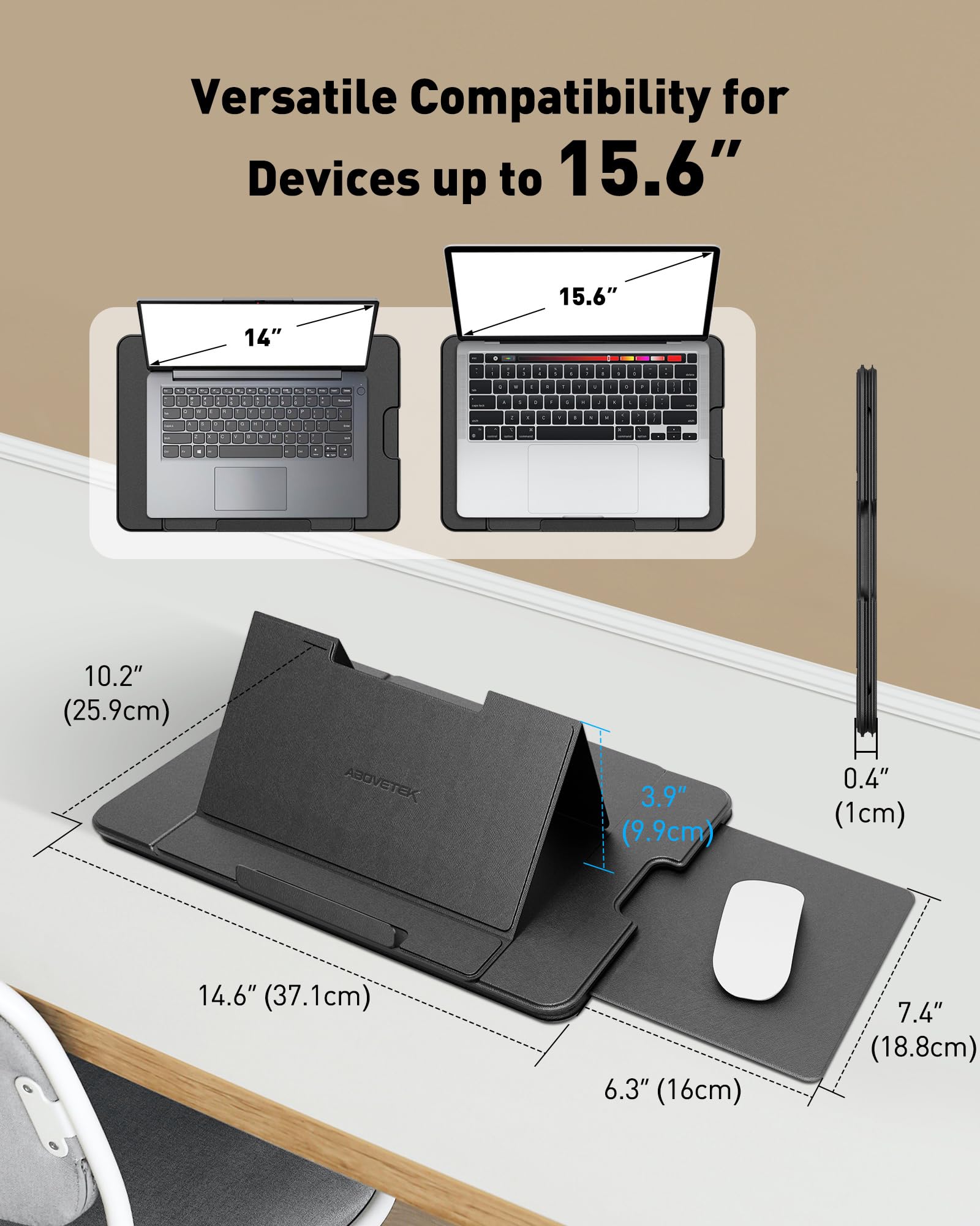 - Compact & Lightweight Design - This portable laptop desk folds to just 14.6" x 10.2" x 0.4" and weighs only 1.73 lbs, making it perfect for on-the-go professionals. Easily fits in your bag for travel or storage. Transform any space into a productive workspace with this versatile laptop pad.