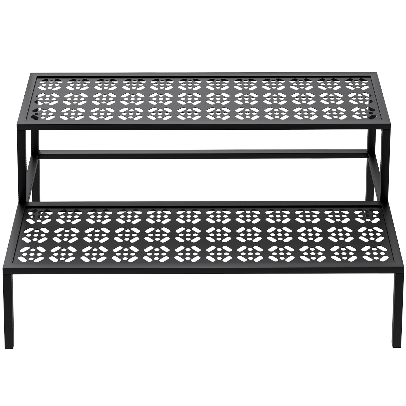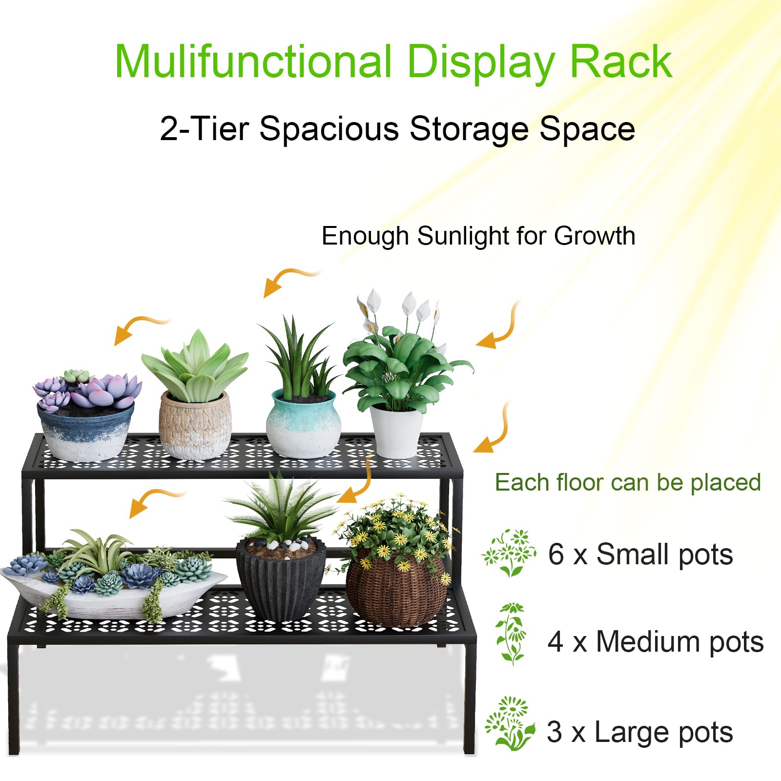 aboxoo Metal Plant Stand 2 Tier Potted Multiple Flower Pot Holder Plant Shelf Indoor Plants Multiple,Outdoor Heavy Duty Planter Display Shelving Unit for Patio Garden Corner Balcony(Black)