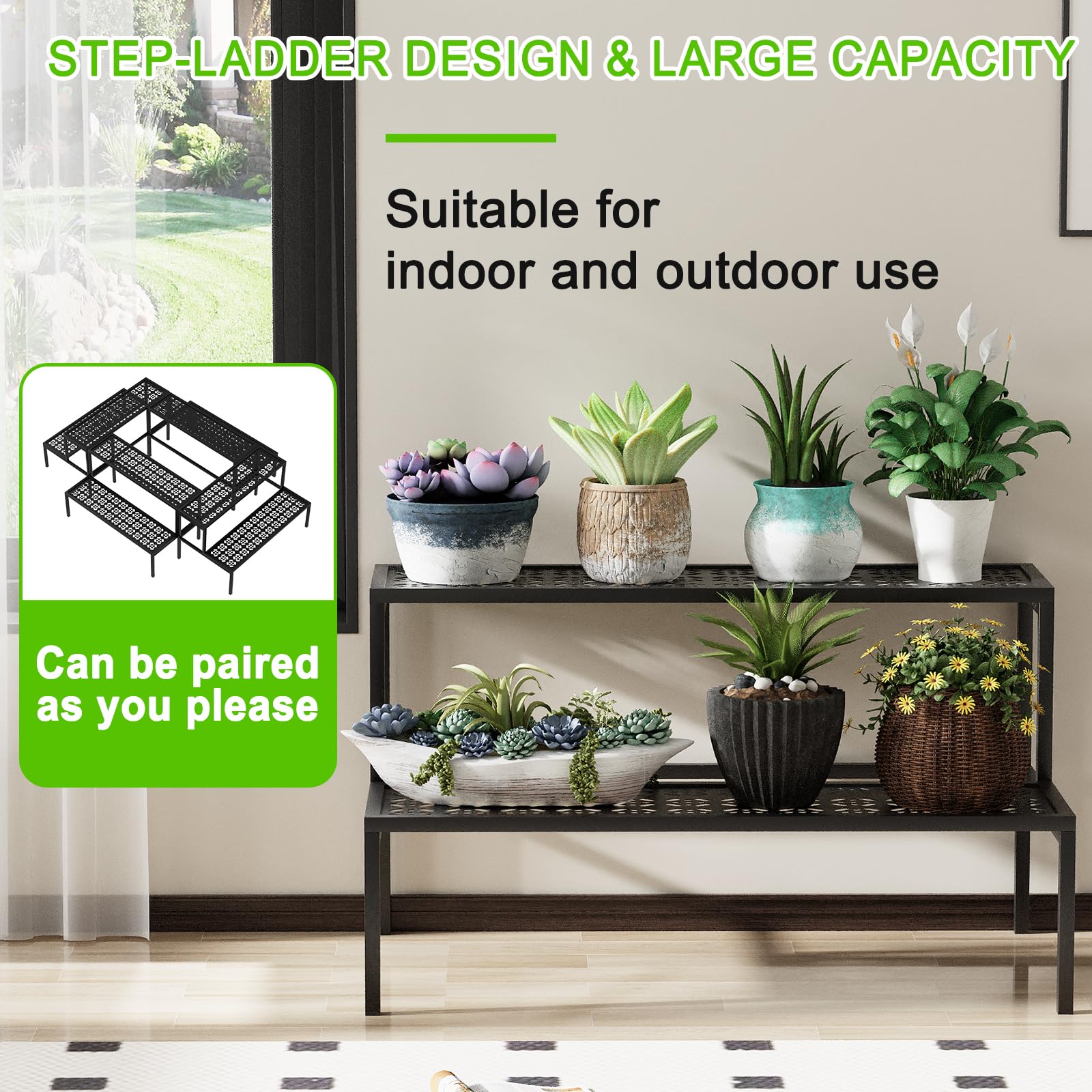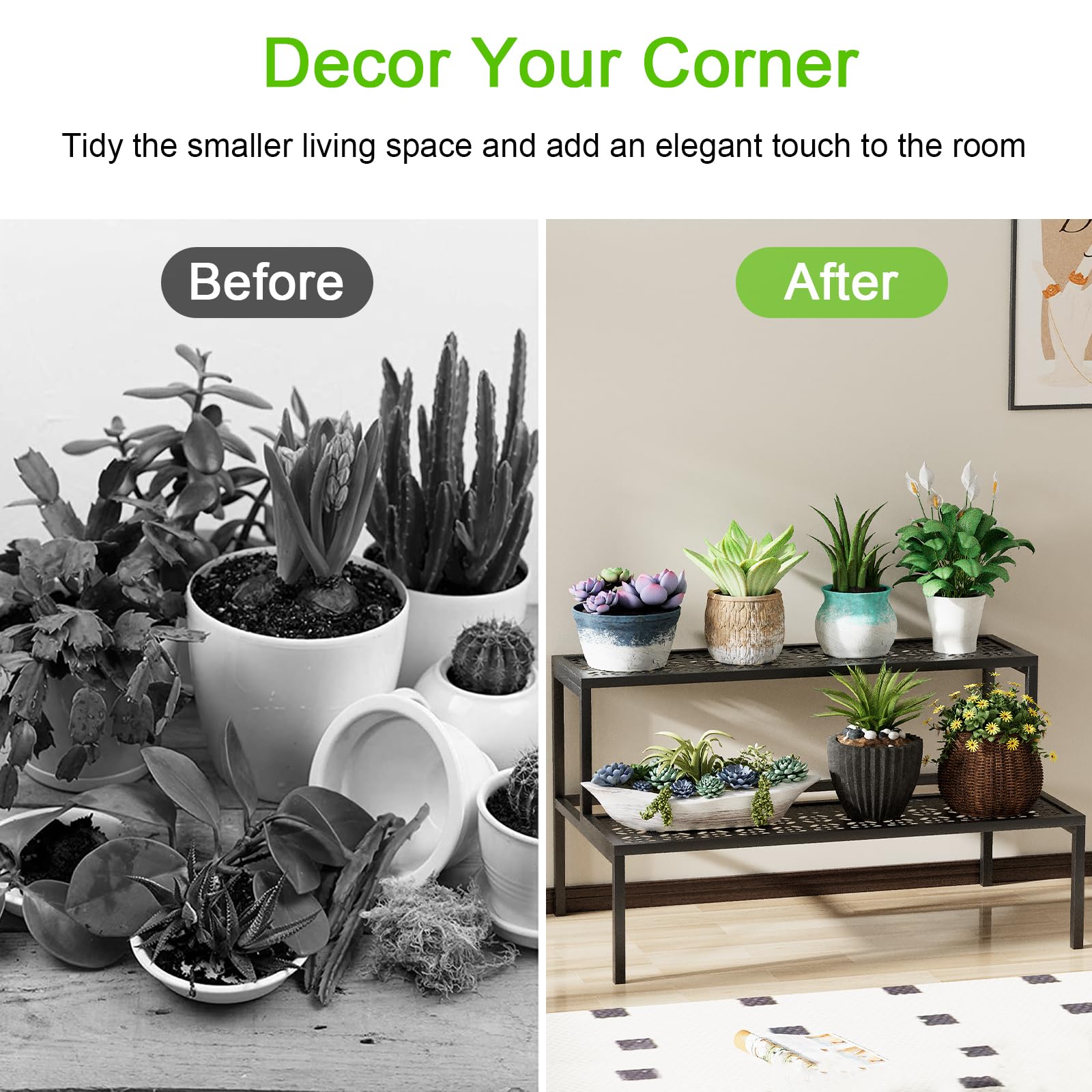 - 【2 Layer Corner Stand】:This is a double layer flower stand to display your beautiful potted flowers, succulents. Suitable for patio and garden balconies and so on as garden decoration. The stepped design saves space and is ideal for corner placement. 2 layers of plant stands provide large storage space.