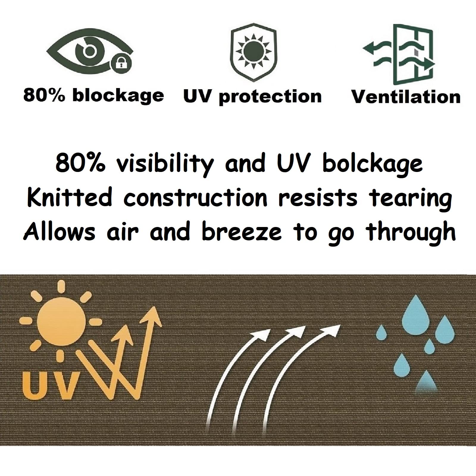 - 【80% Blockage】The privacy screen can blocks out the bright sunlight, provide 80% Block while still see through and keeping your sight view. Effective protect your privacy meanwhile owns lower temperature and wind, water, dusty resistance function.