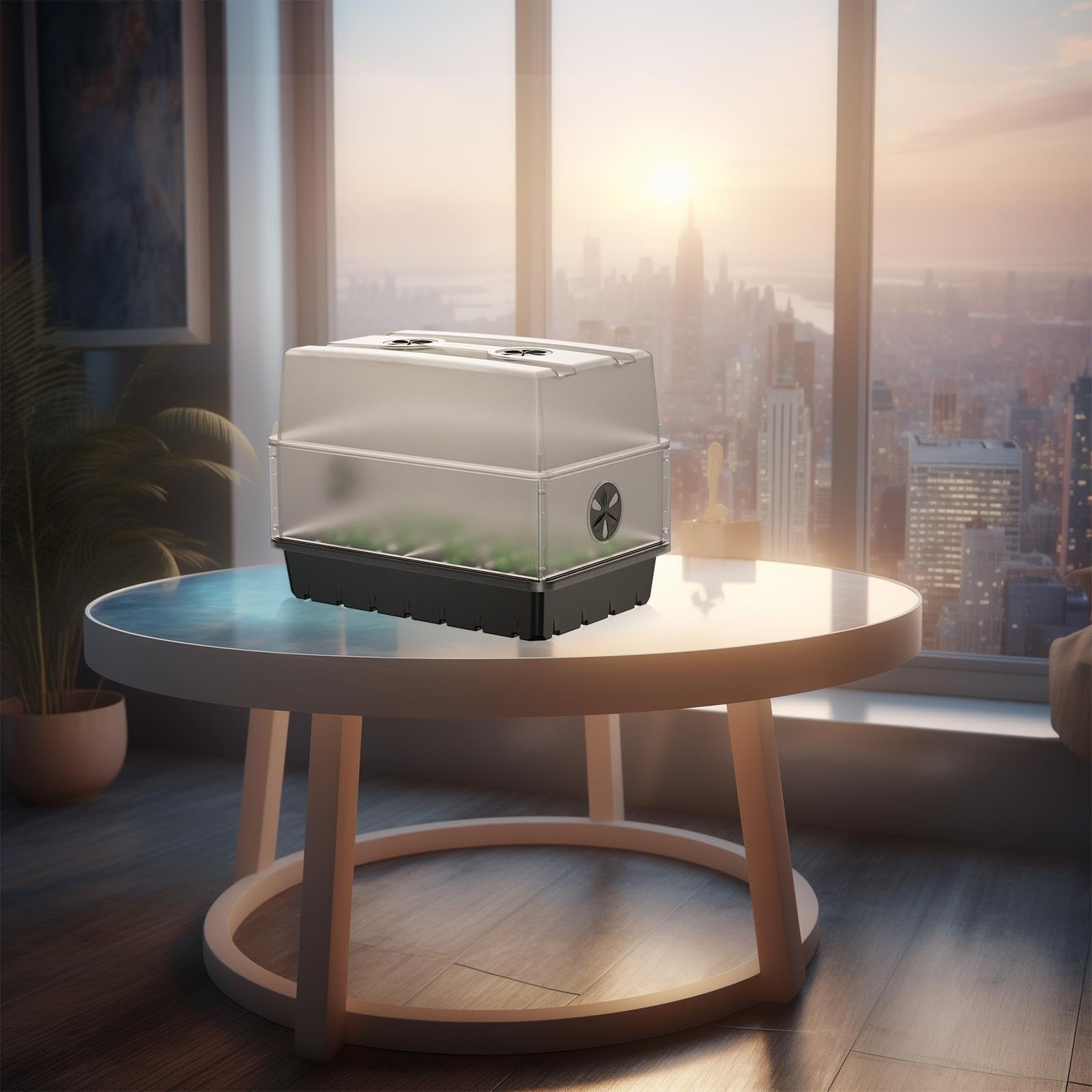 - Optional height extension panels with more adjustable vents raise the dome for propagation projects.