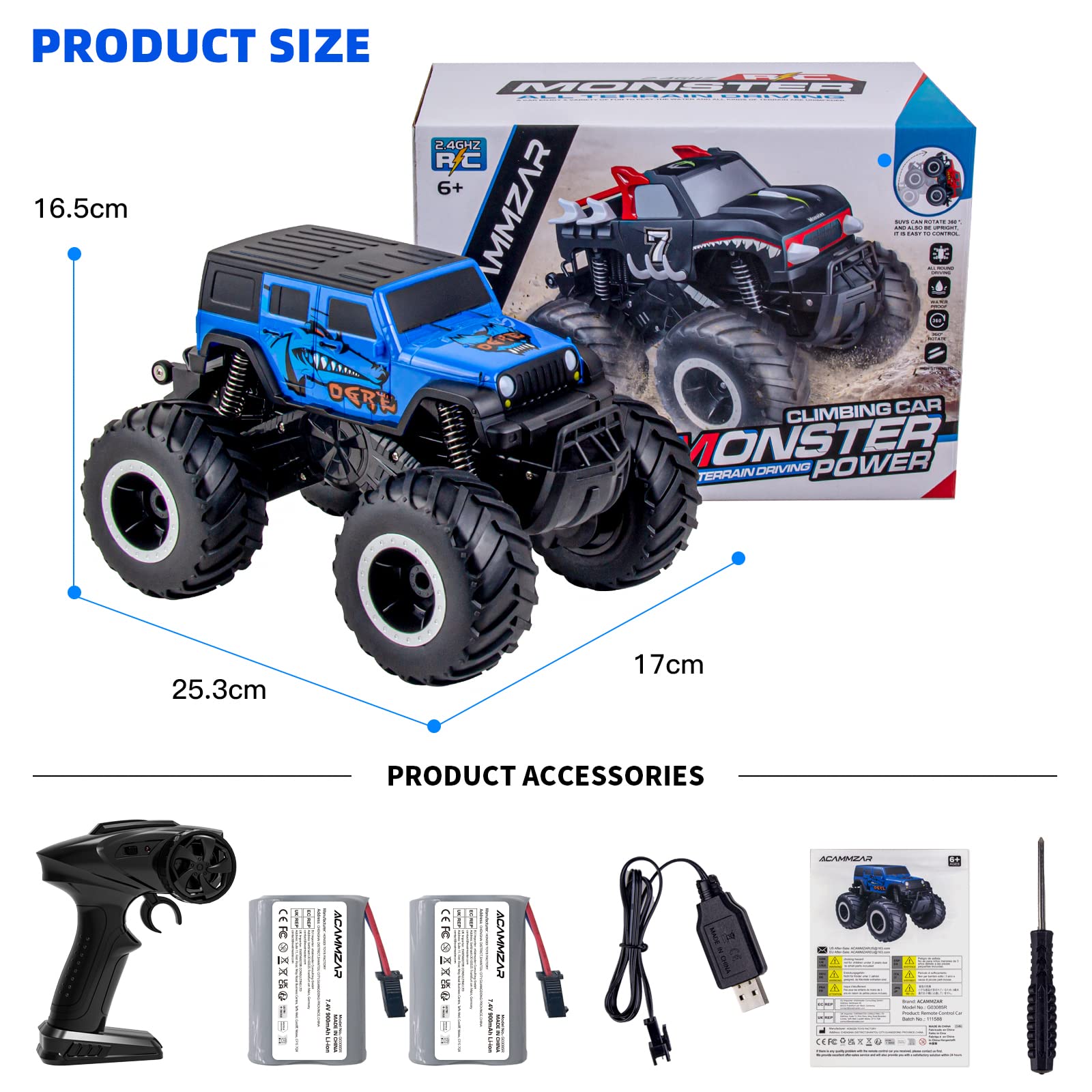 ACAMMZAR 1:16 Amphibious RC Monster Truck, Remote Control Cars for Kids, IPX7 Waterproof 2.4GHz 4WD 360° Rotation, Double Sided RC Car for Boys Girls Gifts, Blue