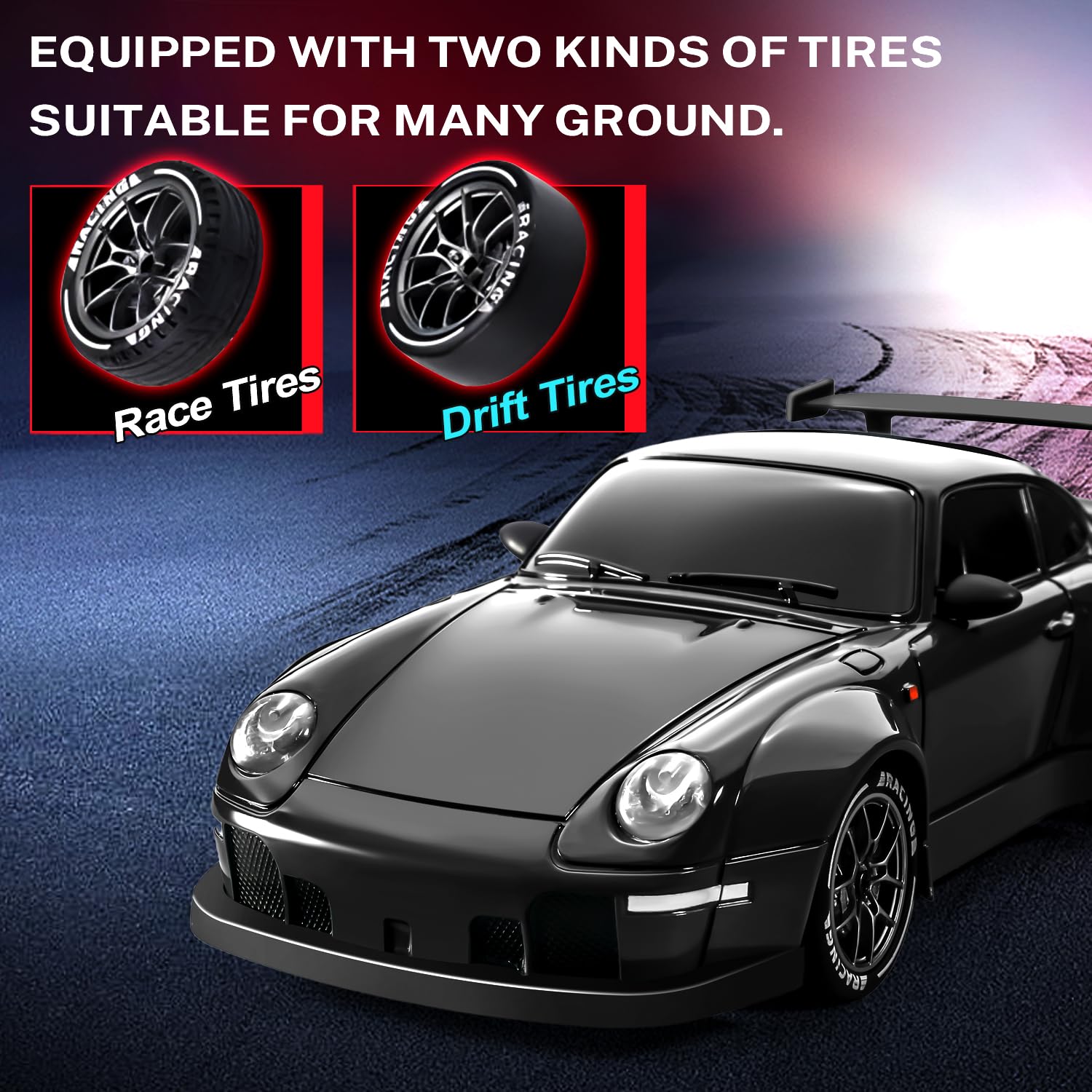 ACAMMZAR RC Drift Car, 1:24 Remote Control Car for Kids, 20KM/H 4WD High Speed RC Cars with Lights, Extra Racing Tires, Vehicle for Adults Boys Girls, Black
