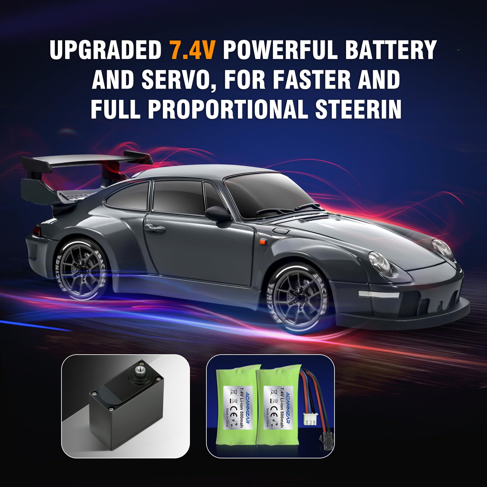 ACAMMZAR RC Drift Car with Gyro, 1:24 Full Proportional Remote Control Car, 25KM/H 4WD High Speed RC Cars with Lights, Extra Racing Tires, Vehicle for Adults Kids Boys Girls, Gray