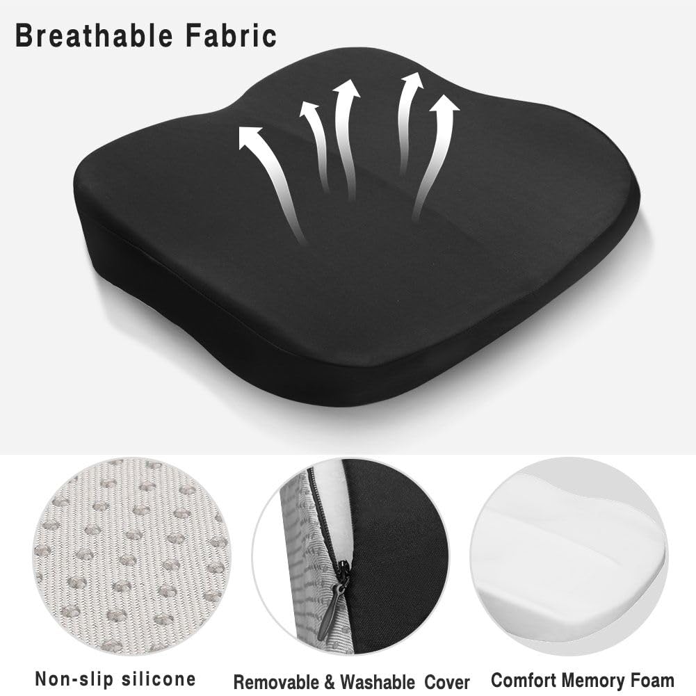- 【Comfortable Car Seat Cushion】This adult booster seat for car.The breathable fabric, polymer memory foam and non-slip silicone gel of this car seat cushion with right thickness help you to reduce the pressure on the coccyx. The Car Seat Cushion adopt mesh material, comfortable and breathable,make you more comfortable when driving.