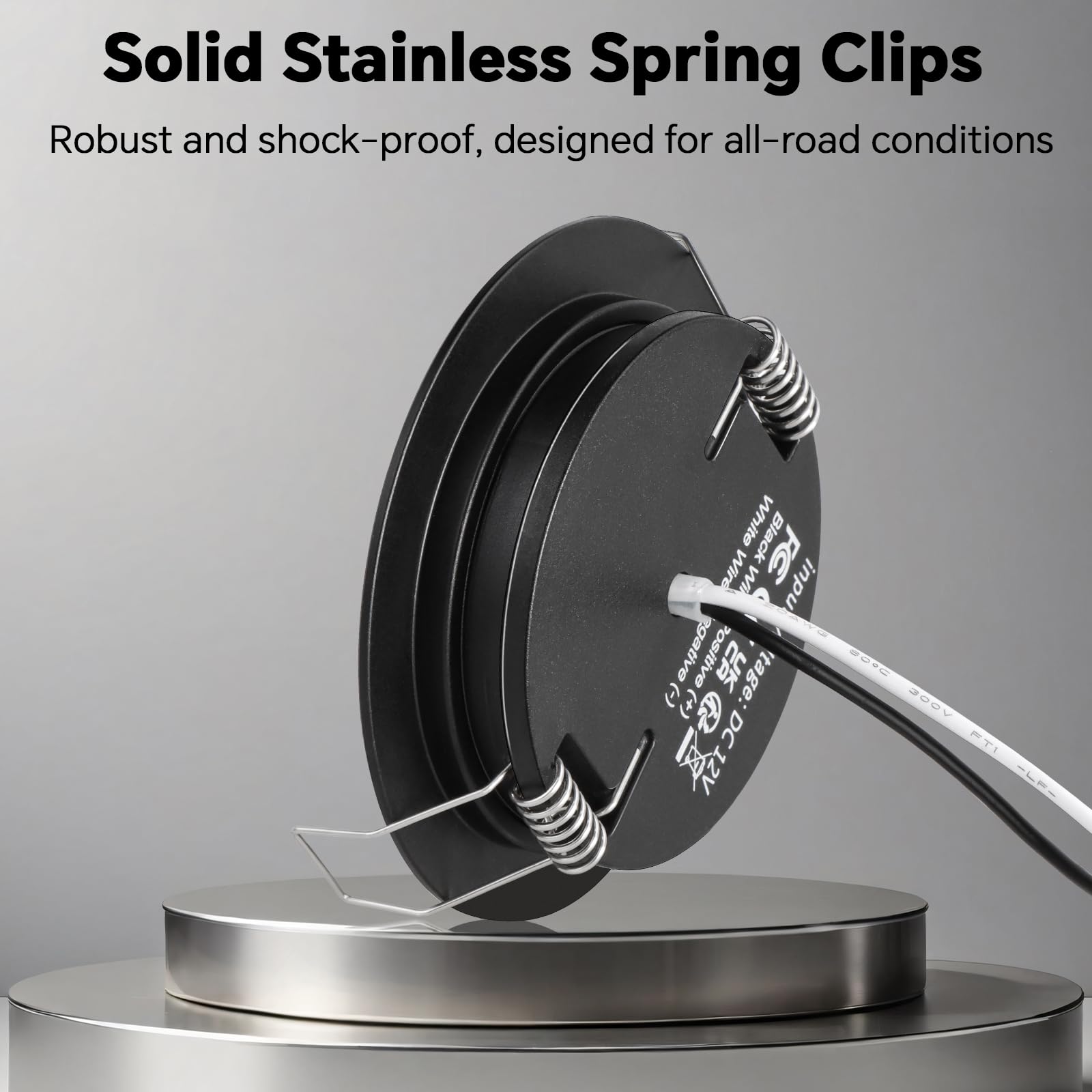 - Clean-Looking Flush Mount: The LED downlight is recessed mounted into a 2-1/4" cutout hole and firmly secured by 2 stainless steel spring clips, making it sturdy and vibration-proof. It also provides a clean and modern look after installation