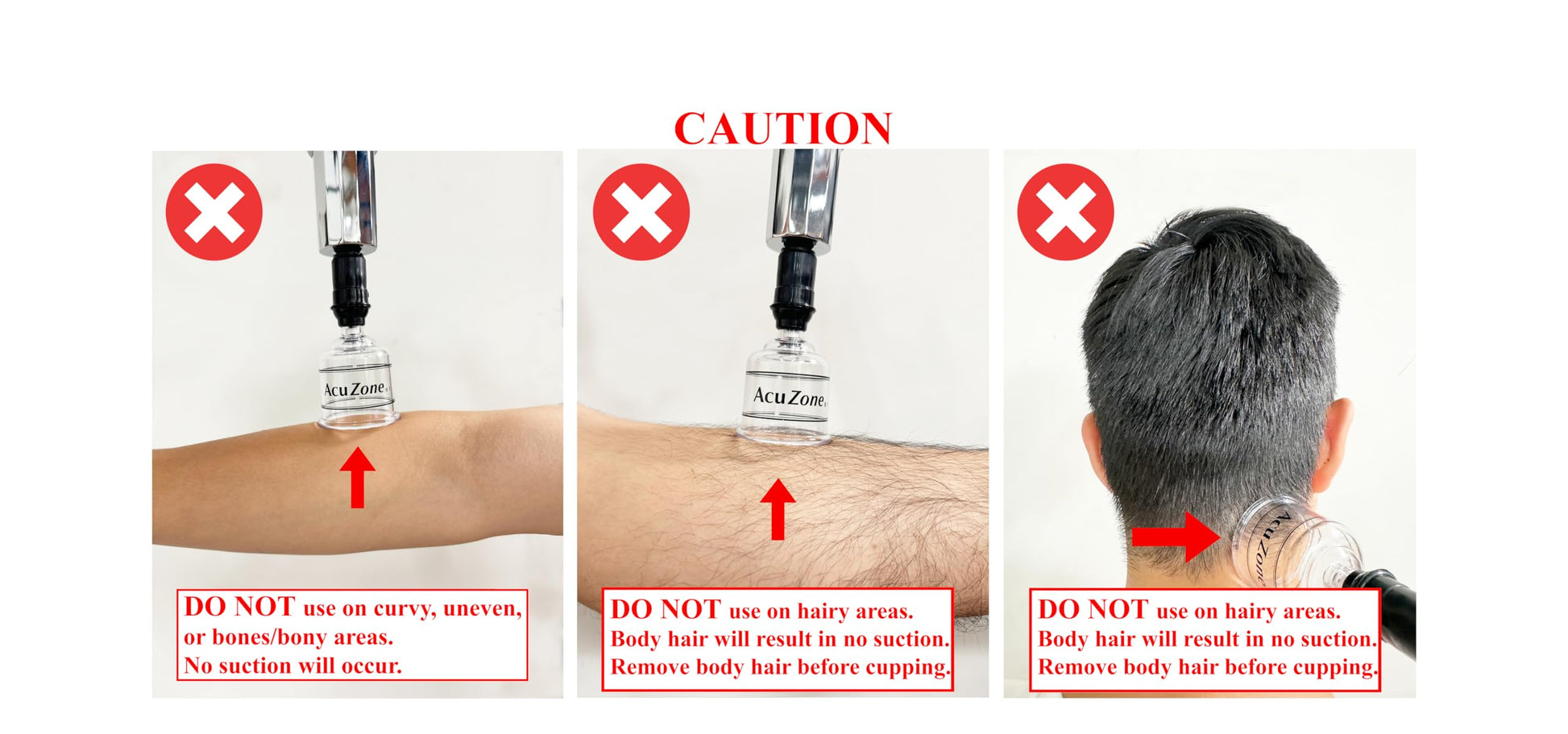 Details: 19 Plastic Cups (Multiple Sizes): The set includes a variety of cup sizes ensuring effectiveness for different body areas. Target large areas like the back and thighs or focus on smaller areas like the neck and arms. CAUTION: Thoroughly clean skin and remove body hair before cupping. Body hair will result in no suction. Do not exert excessive force when attaching the extension tube to the cups to prevent the tube from cracking. Pressing down too firmly will cause the extension tube to crack. *DO NOT use the cups for sliding cupping – this technique will cause the cups to crack. Our company is NOT responsible for damage to cups, which may result from slide cupping technique or any massage techniques. **Please note that all the cupping cups are disposable** TROUBLESHOOTING TIPS: 1) Use the cups on a clean, flat surface that is free of oil. 2) DO NOT use on curvy/uneven, bones/bony, oily, or hairy areas. Remove body hair before cupping. 3) Attach an appropriate-sized cup to a flat area. The cup should cover the entire surface of the skin. Attempting to use a large cup on a smaller surface area will cause the air to leak out and result in no suction. If there are any gaps/space between the cup and the skin, the cups will lose suction and will not stay attached to the skin. Any size cup can be used on a wide, flat area such as your back. Small cups should be used for other areas such as your arms, legs, and other smaller areas. 4) Do not move your body when attaching the cups to the skin or during use to prevent the cup from falling off. 5) Pump about 2-3 times or as needed, but do not over pump or exert excessive force. Applying too much suction can damage the skin. 6) The extension tube is an optional part that should only be used when SELF CUPPING on hard-to-reach areas (example: on your own back). 7) Do not share - the cups should be used by only one person.