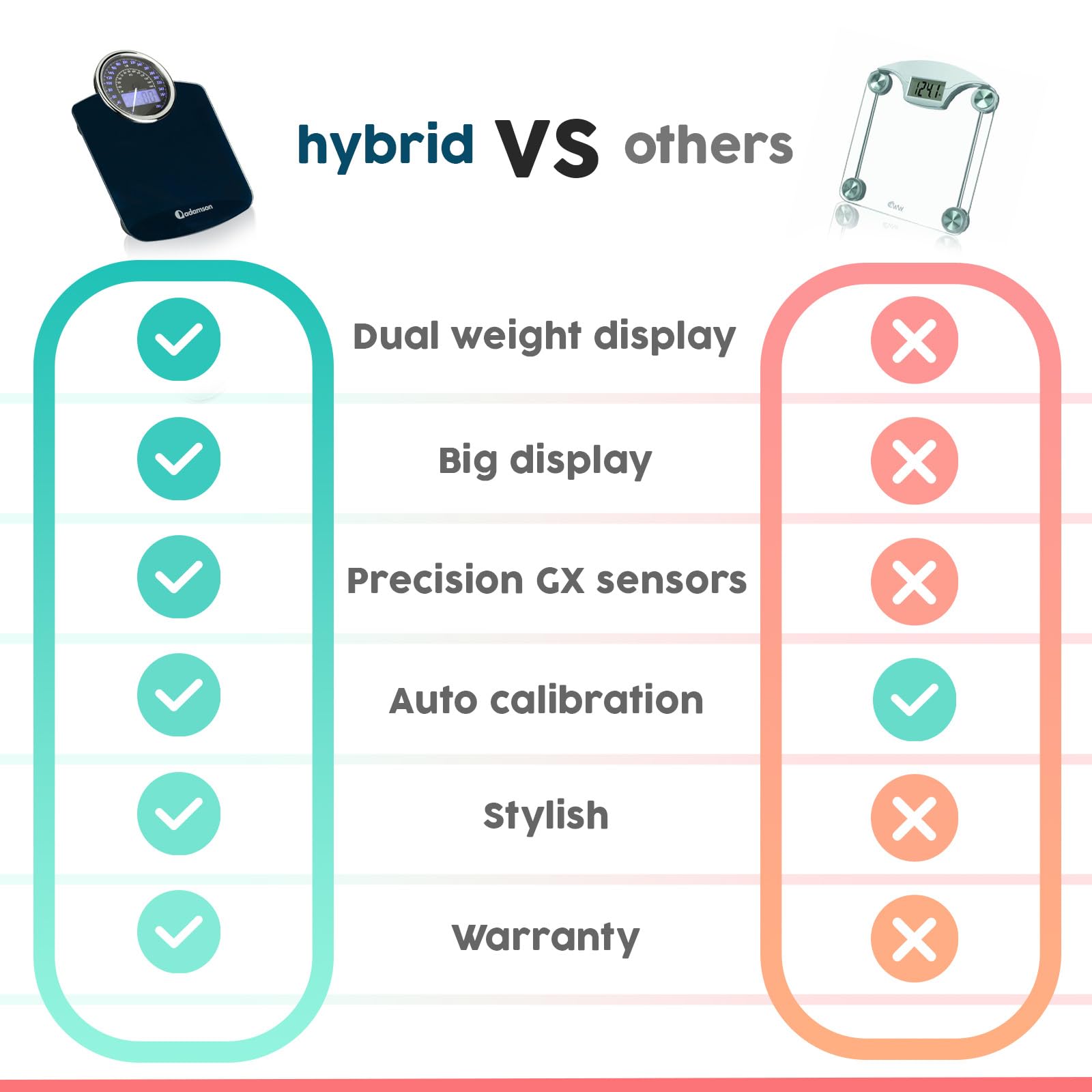 - 🌟 DUAL WEIGHT MEASUREMENT DISPLAY: Introducing the Adamson Hybrid Bathroom Scale – the only choice of digital scales for body weight. Our innovative scale provides both digit and analog dial weight measurements, giving you the best of both worlds - digital accuracy with an analog scale experience.