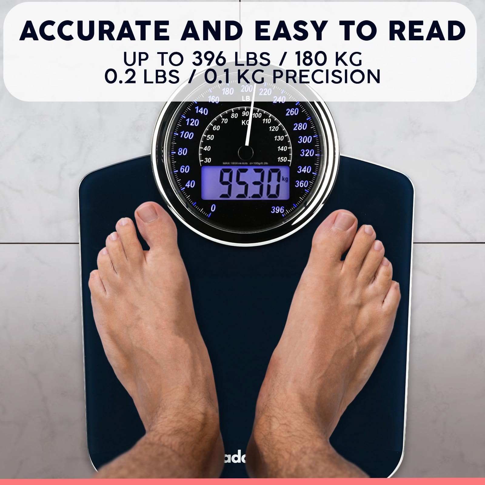 - 🌟 CLEAR AND EASY-TO-READ DISPLAY WITH BACKLIGHTING: The Adamson Hybrid Bathroom Scale focuses on providing precise weight measurements with its dual display feature, which is enhanced by a convenient backlight. Its digit and dial combination ensures that you can effortlessly check your weight with clarity and accuracy, even in low-light conditions.