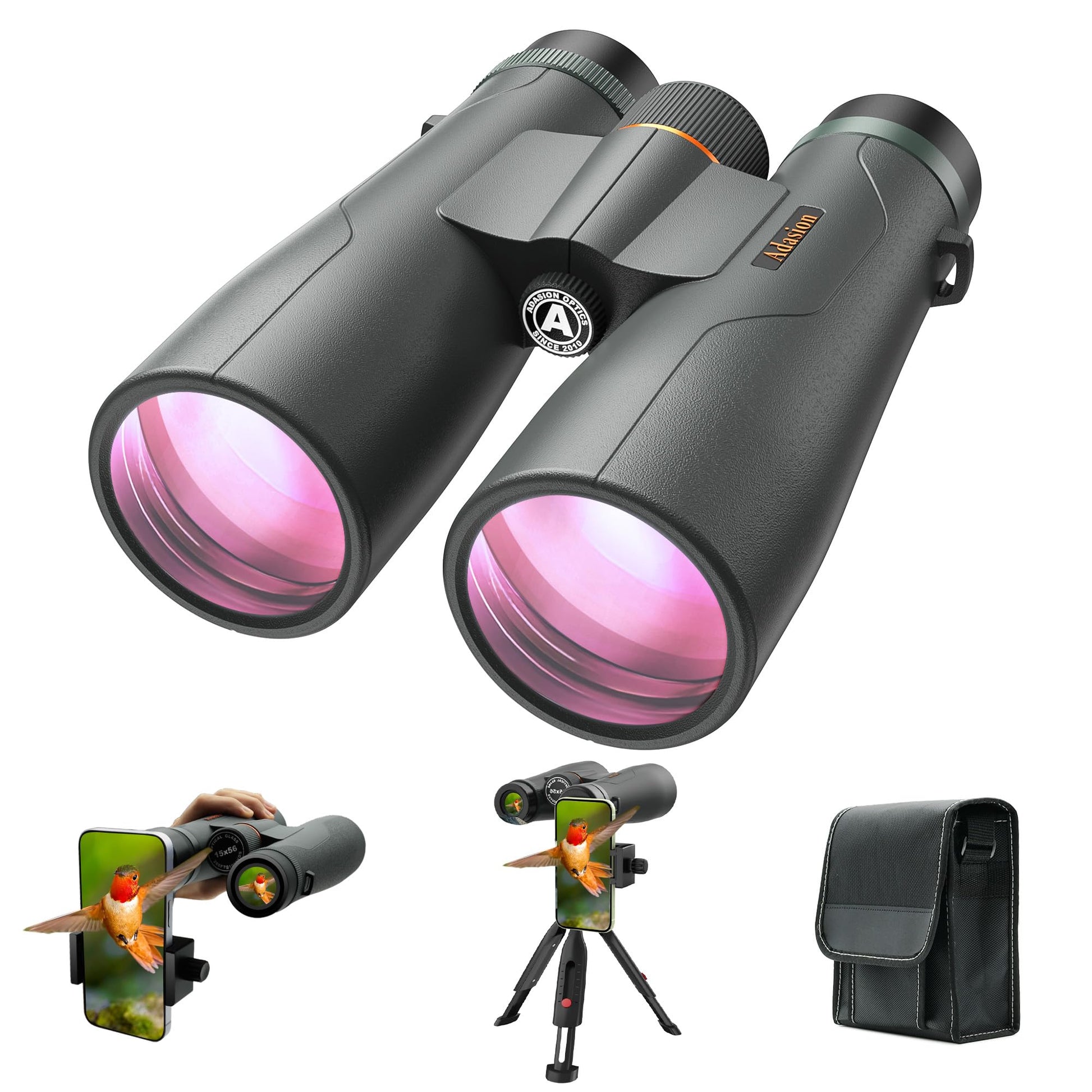 Adasion 15x56 UHD Binoculars for Adults High Powered with Phone Adapter and Tripod, Super Powerful BAK4 Prism Waterproof Binoculars for Hunting Stargazing Bird Watching Hiking Safari Travel Sports