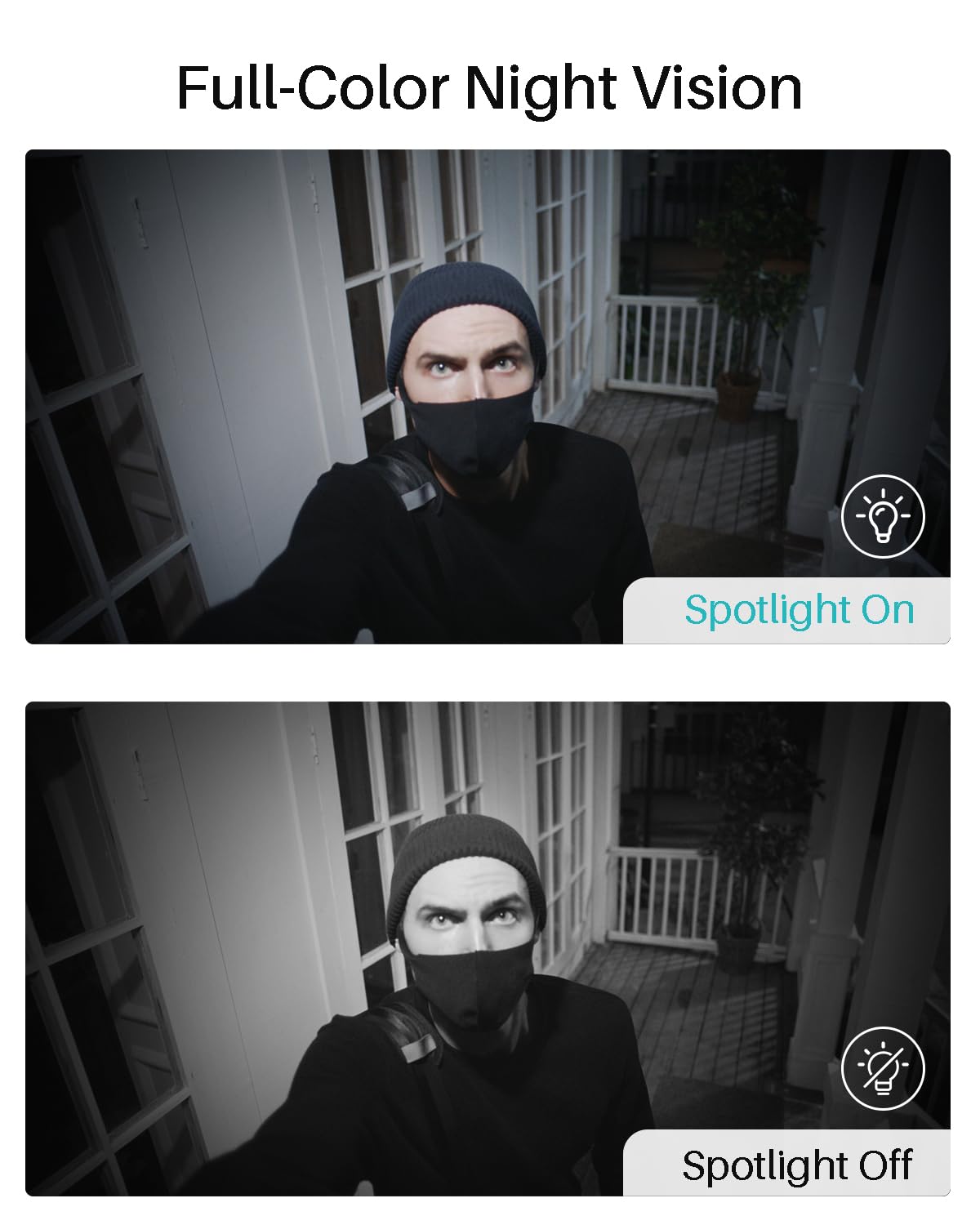 - 【A Crystal-Clear 2K Image & Two-Way Audio】High definition 2304×1296 resolution, cameras for home security outdoor wireless wifi can clearly monitor detector your house. Two-Way talk and quick replies that allow you to see exactly what is happening in and around your home.