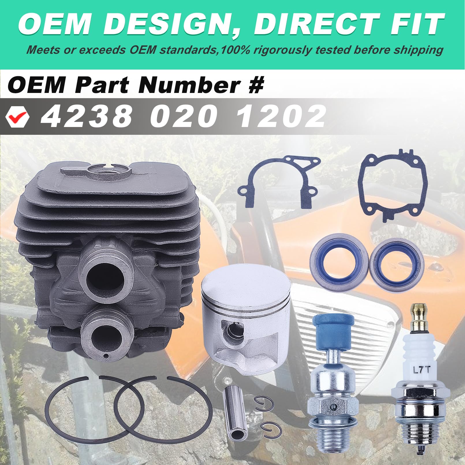 Adefol 50mm Cylinder Piston Gasket Kit for Stihl TS410 TS420 TS 410 420 Cut-Off Saw, TS410 TS420 Cylinder Piston Kit with Oil Seal Decompression Valve Spark Plug Gasket Part # 4238 020 1202