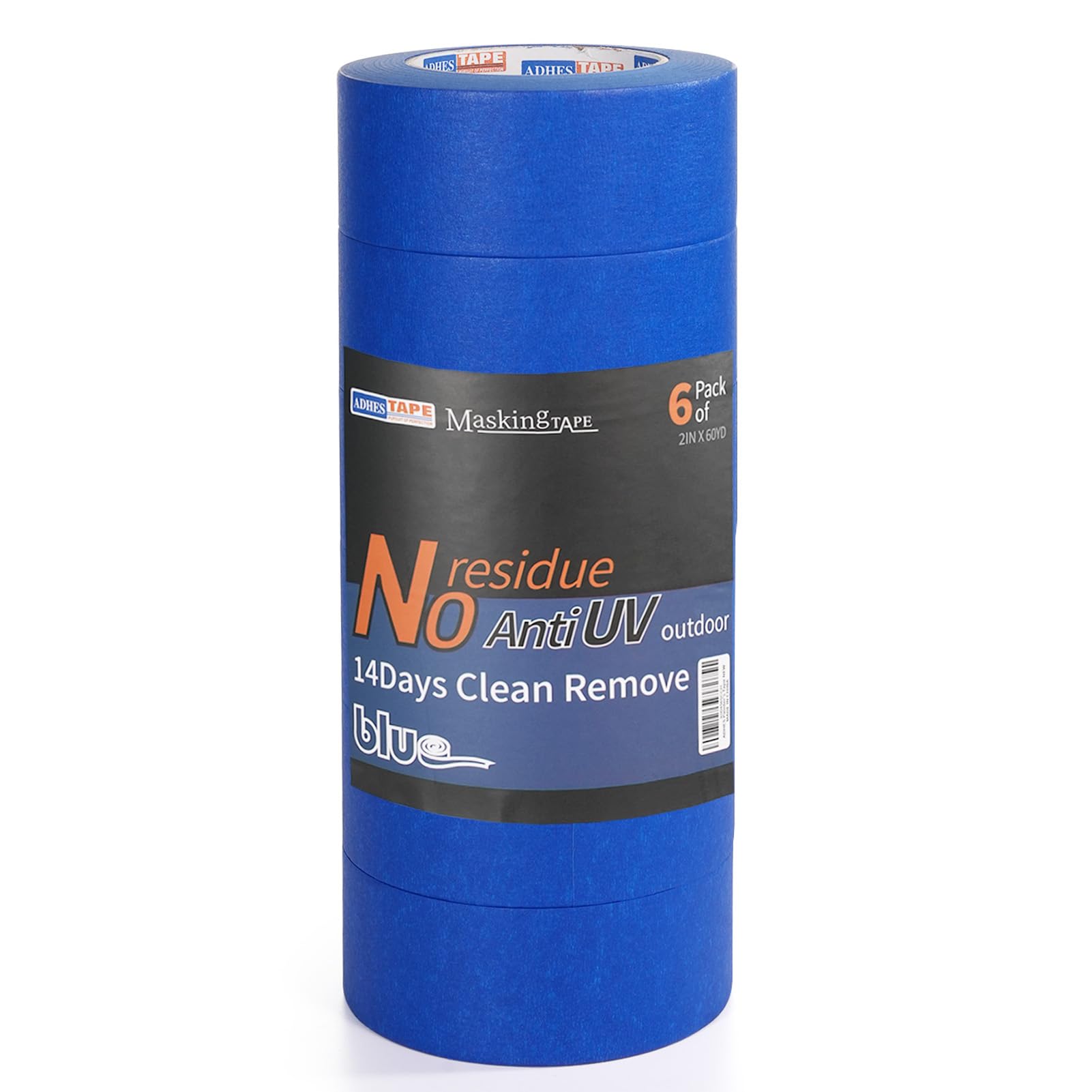 ADHES Upgrade Blue Painters Tape, Masking Tape for Painting 6 Rolls x 2 Inch x 60 Yards, Blue Paint Tape No Residue Outdoor Anti UV Multi Surface Use, Total 360 Yards