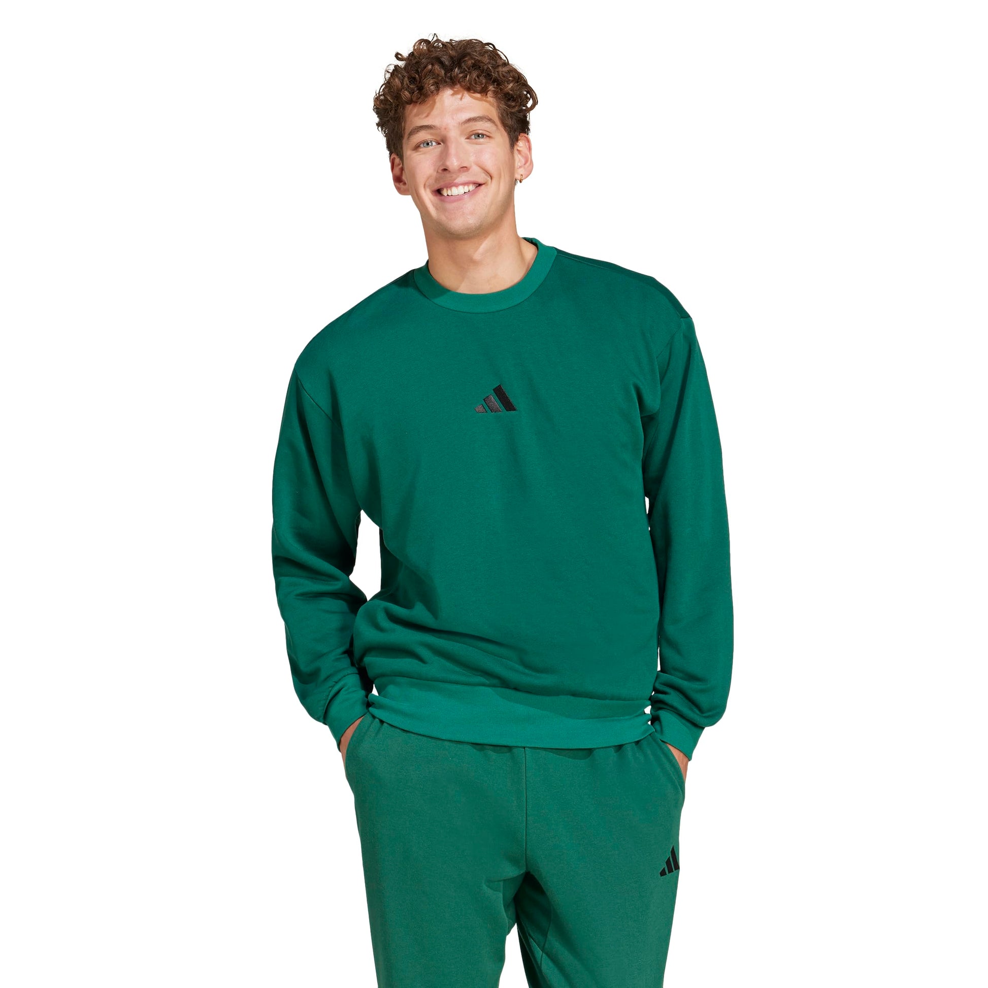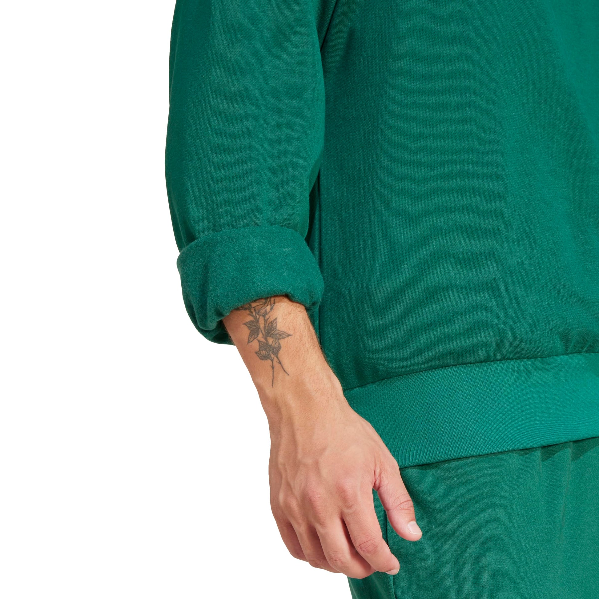 adidas Mens Essentials Feel Cozy Fleece Sportswear Sweatshirt,Collegiate Green/Black,Large