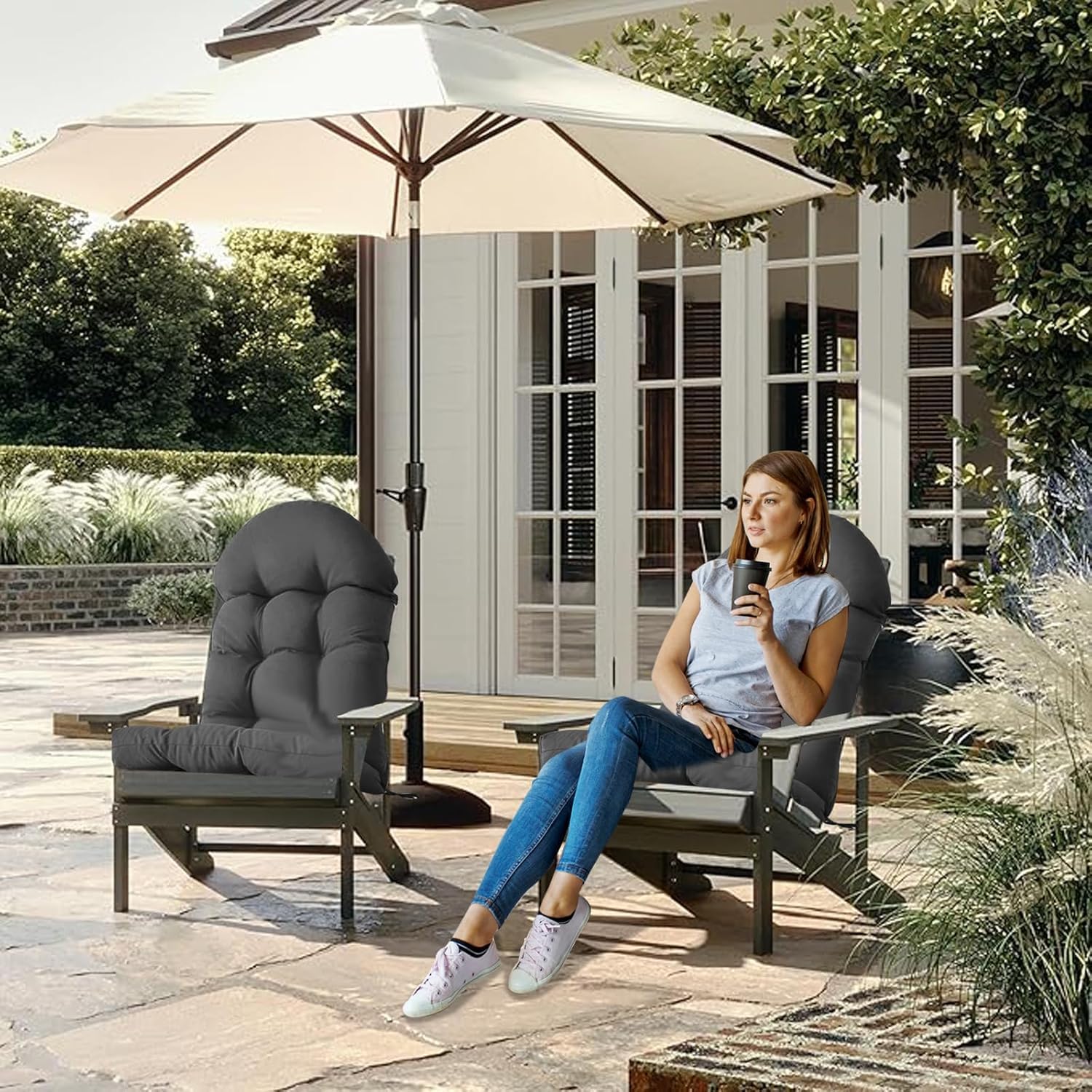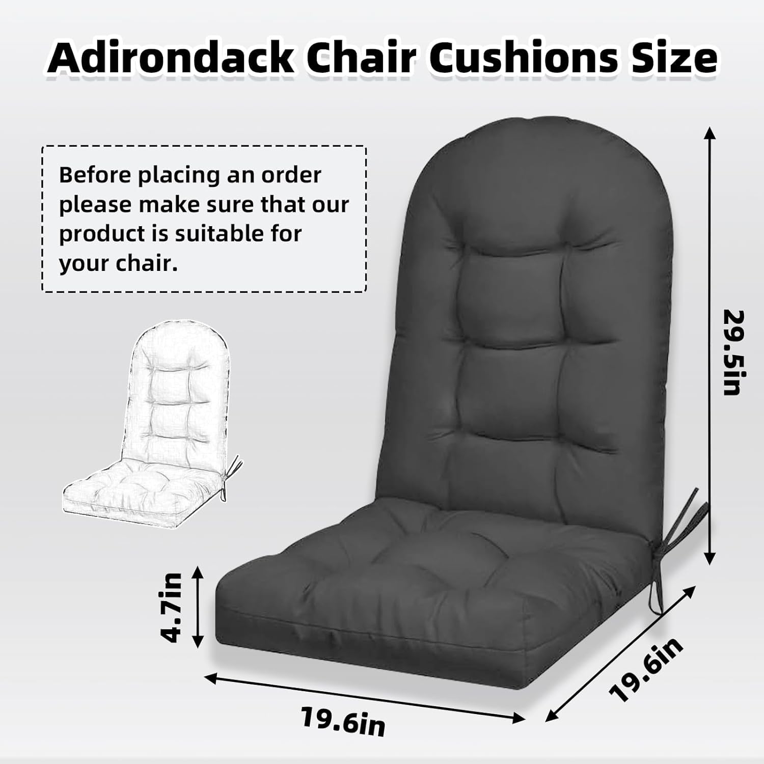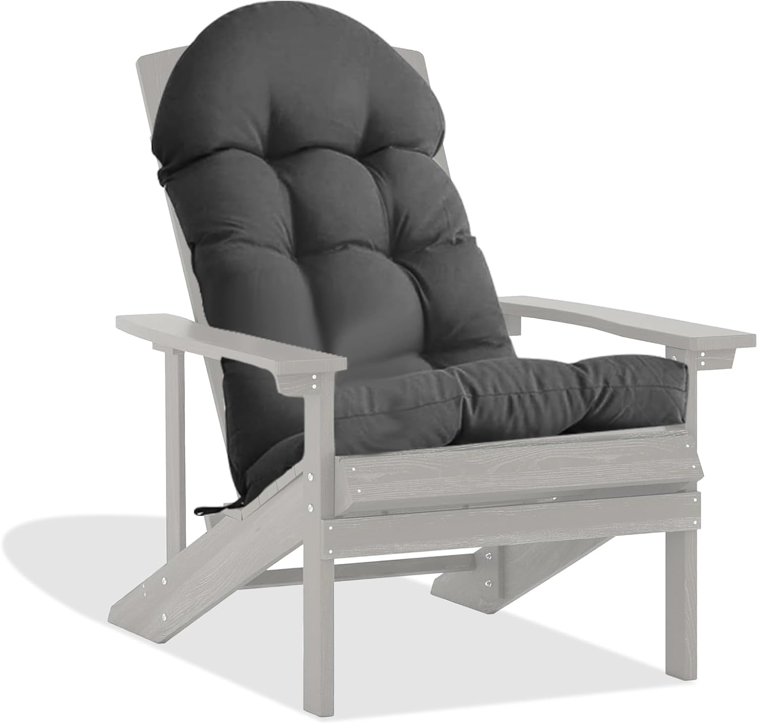 - Design: Over the years, we listened to your feedback, tried different structures, and finally created a comfortable Adirondack Chair Cushions. Our patio chair back cushions is equipped with two extra-thick straps that can be fixed to the back of any chair to ensure that your adirondack seat cushion will not move accidentally.adirondack chair pads is designed with double-piped structure, Also great for high back outdoor chairs, fire pit chairs, patio chairs and more.