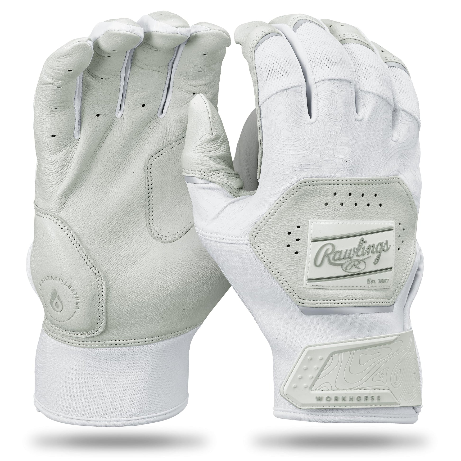 Details: Walk up to the plate with more confidence by wearing the Rawlings Workhorse batting gloves. With increased durability and a fresh, new look, the Workhorse batting gloves are sure to keep you feeling ready every time you pick up your bat. These top notch batting gloves are carefully constructed with a premium Oiltac leather, to provide you with an elite feel and maximum control on every swing.