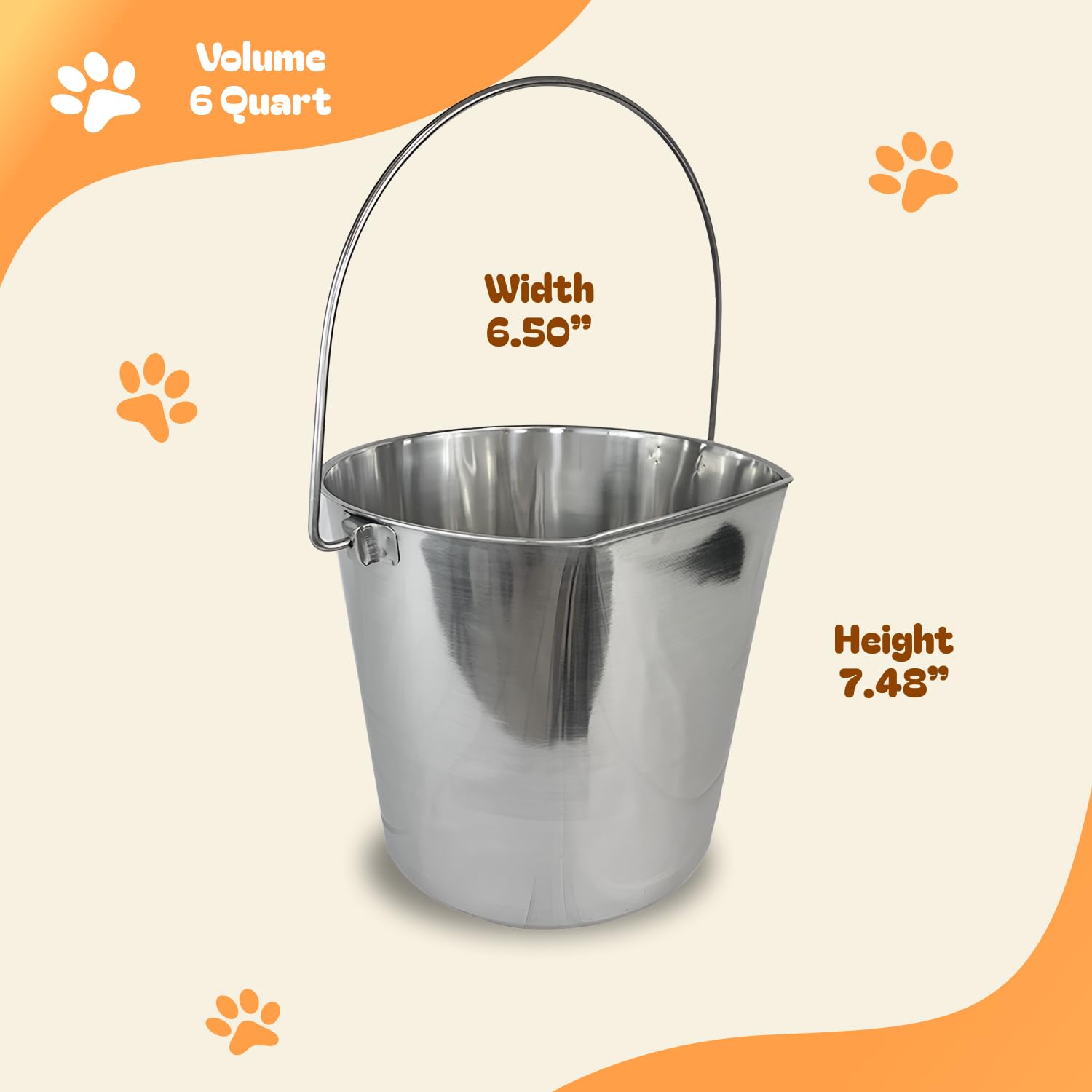 Advance PET Products 6 Quart Heavy Duty Stainless Steel Flat Side Bucket | Durable Food & Water Pail for Dogs, Cats, Kennels, Cages and Critter Crates | Multi-Purpose Bucket