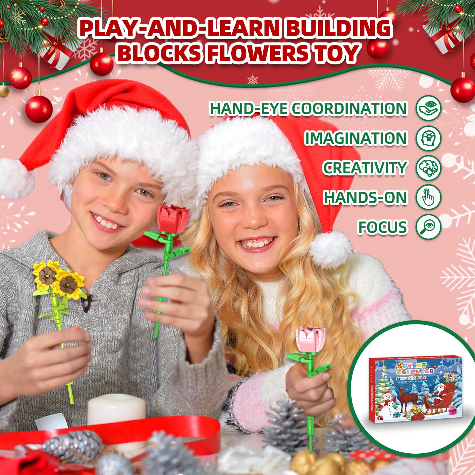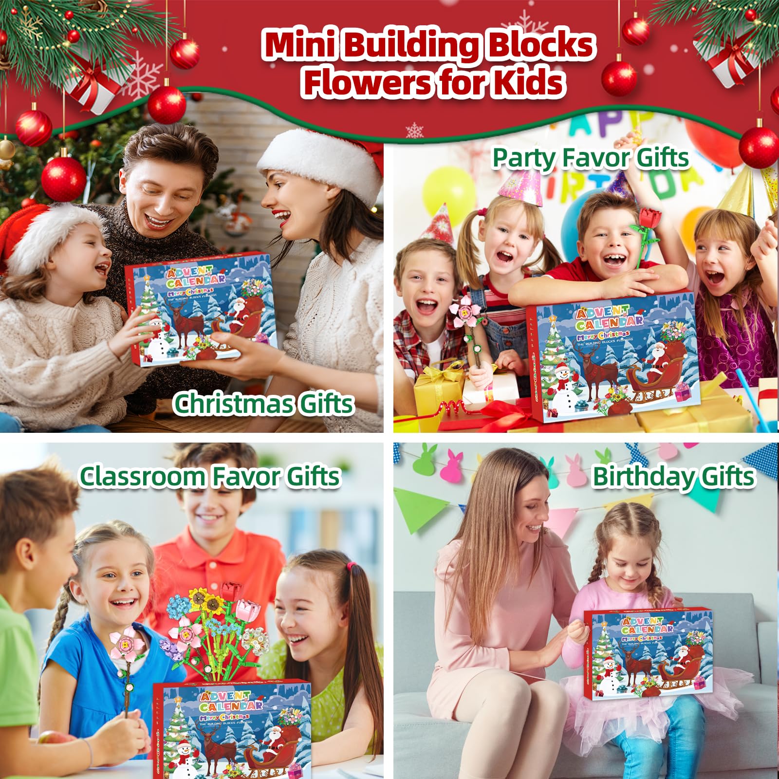 - 【The Perfect Christmas Gift】Christmas Advent Calendar Christmas Flower Building Blocks is the ideal gift for children, family, and friends. An educational and entertaining building block Advent calendar set makes the holiday season joyful and exciting. Perfect for enhancing the Christmas spirit and ideal for filling Christmas with joy and creativity. Follow the detailed instructions together, day by day, and create beautiful memories in the 24 days leading up to Christmas.