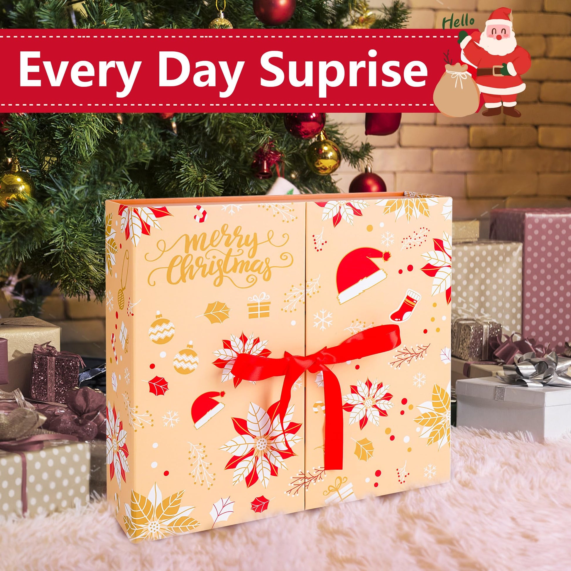 - Christmas Gift Boxes: The outer layer of the Christmas Advent Calendar Empty Blind Box is made from a combination of high quality double-copper paper and gray cardboard in a double-door style.The inside of the box is made from a combination of mono-bronze and kraft paper to create 24 small boxes of different sizes.All boxes are printed with a variety of Christmas elements,such as Christmas trees,Christmas hats,stockings,snow and Merry Christmas.Beautifully made,high quality,bright colors.
