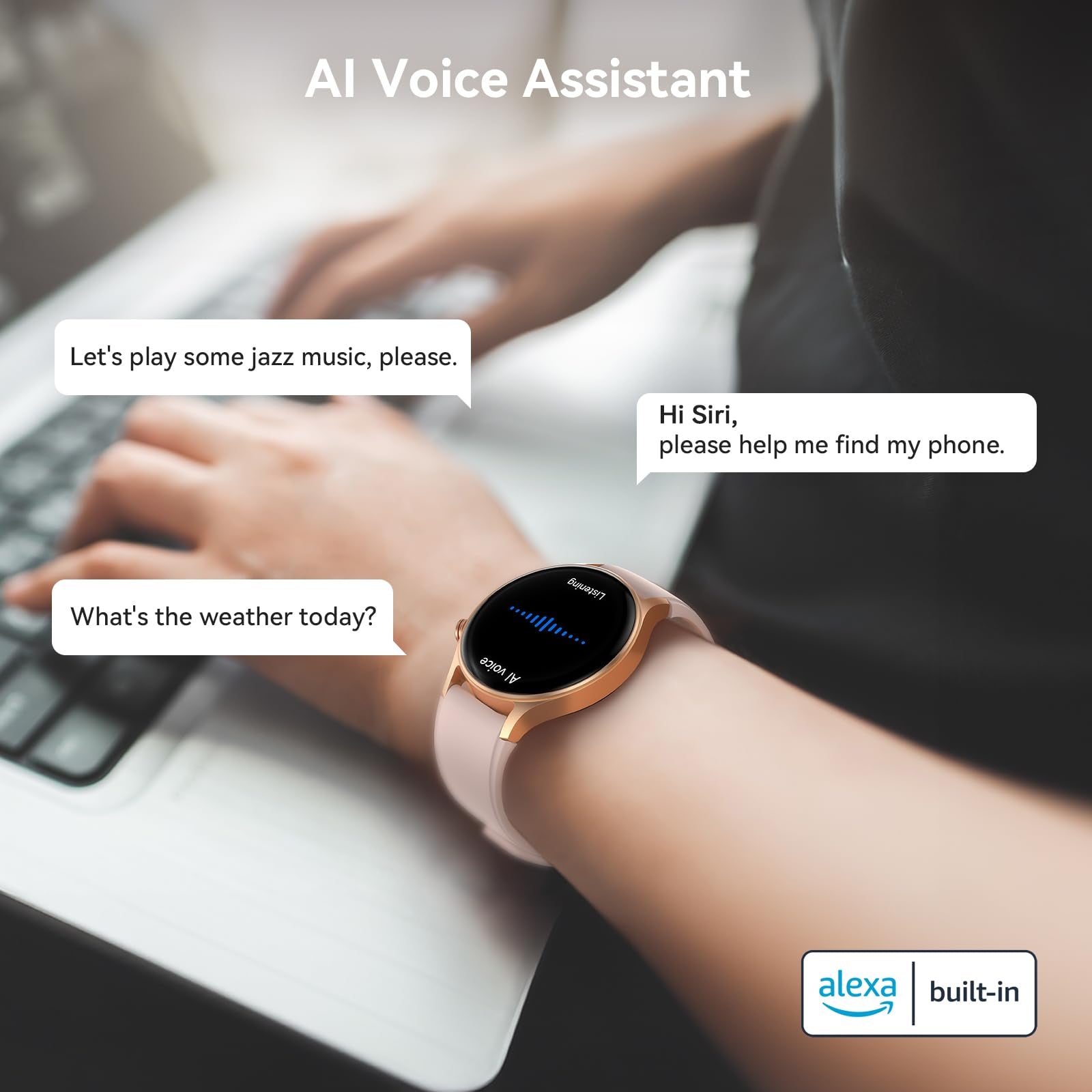 - 【Crystal-Clear Communication】AEAC smart watch for women iphone compatible delivers clear call quality with high-definition speakers and microphones. Built with an AI assistant, it enables smooth voice commands and hands-free calls.