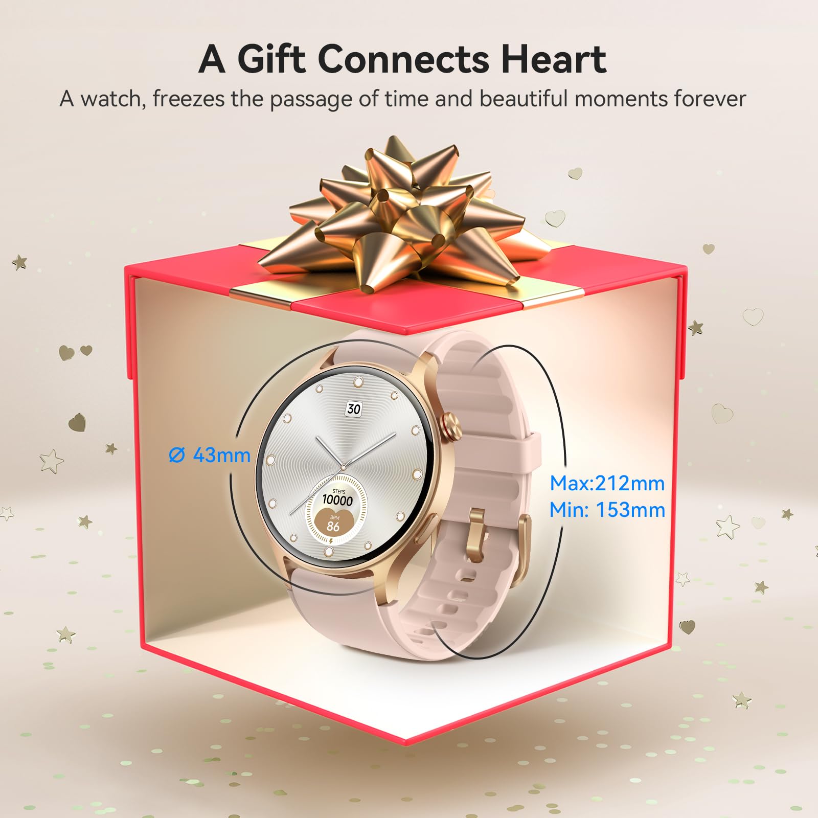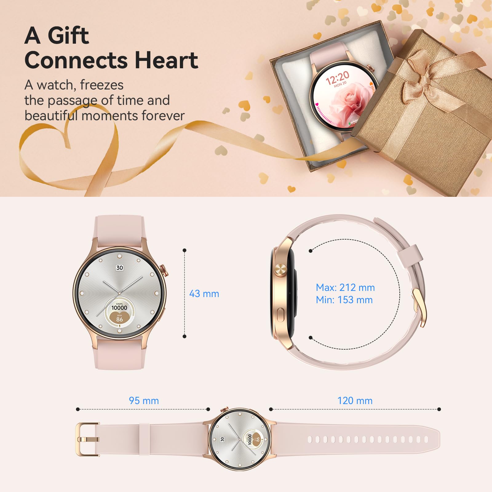 - 【1.32" AMOLED Touchscreen】Display offers sharp visuals and smooth responsiveness. Choose from 200+ watch faces or personalize with your own photos, making smart watch woman uniquely yours.