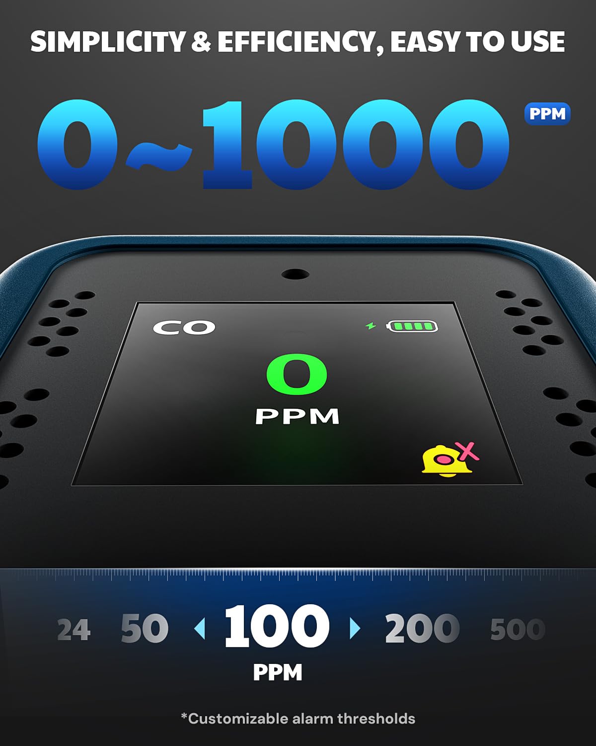 - Portable Design: This CO meter portable features a compact and lightweight design, making it easy to carry and reducing your travel burden. It also comes with a stand and lanyard, perfectly suited for various environments and placement needs, making it an ideal companion for home and travel