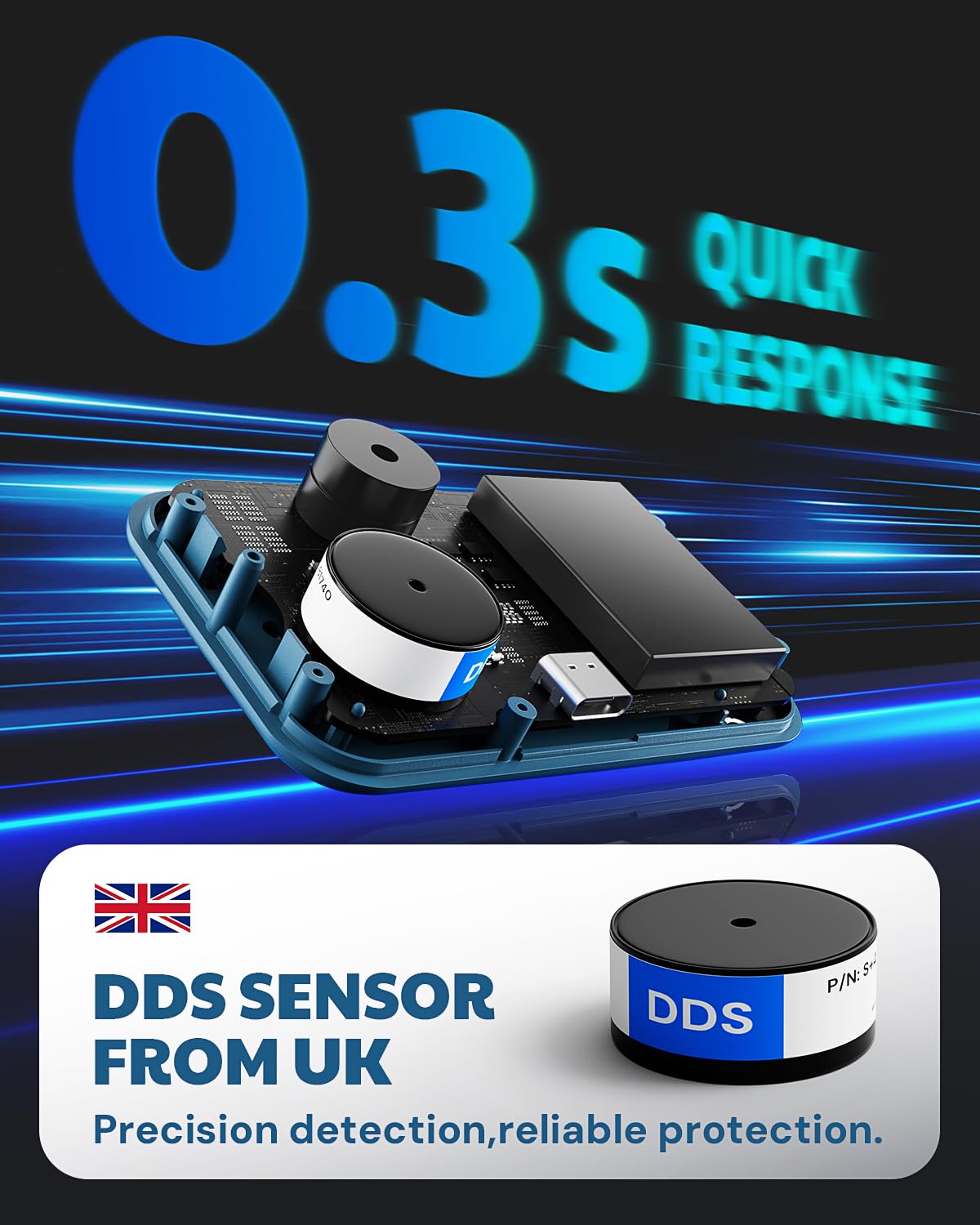 The compact and easy-to-use mini CO detector. Uses a DDS sensor, providing fast and accurate detection. With a single charge, it provides up to 15 days (360 hours) of usage in standby mode, meeting all long-term CO monitoring needs. It is suitable for various scenarios such as home, travel, camping, driving, etc.